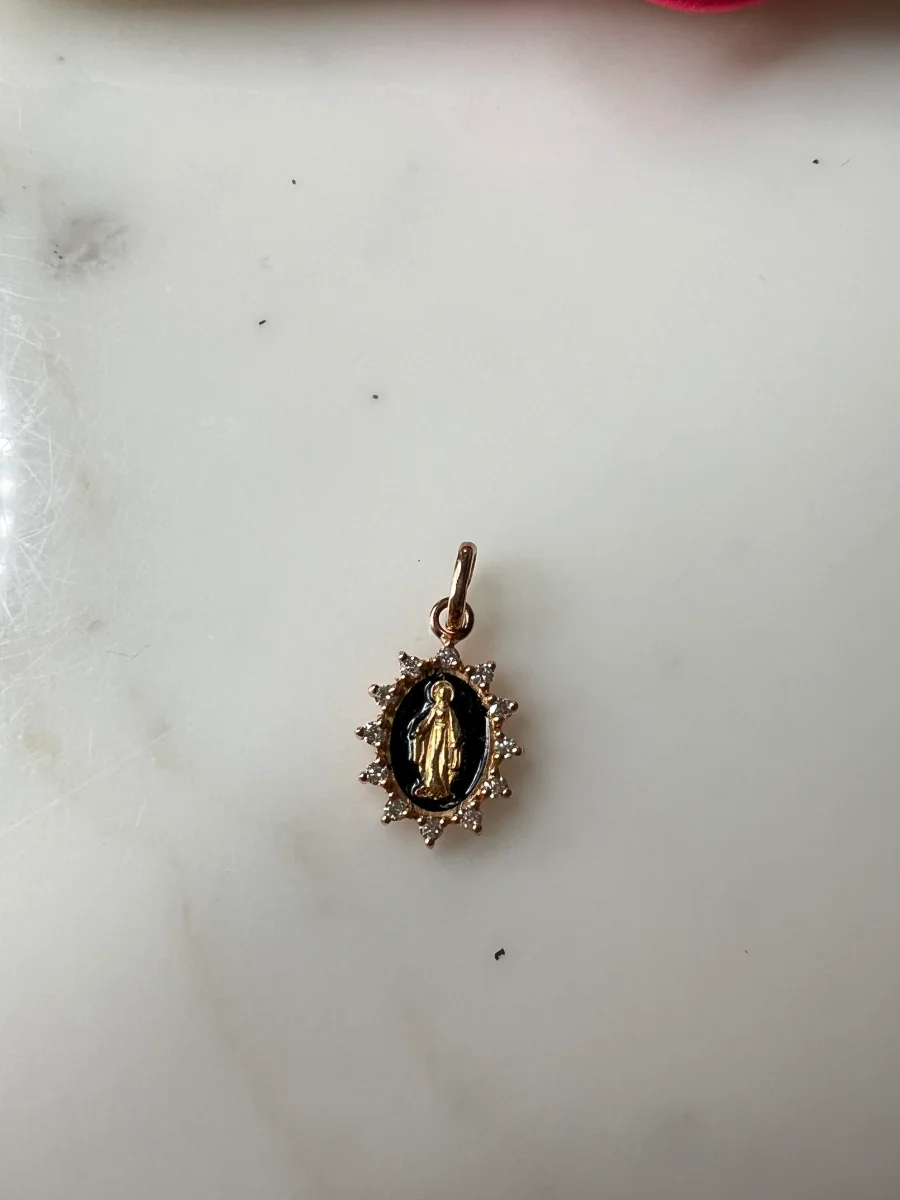 GigiClozeau – Pendentif noir Petite Madone Suprême, or rose, diamants