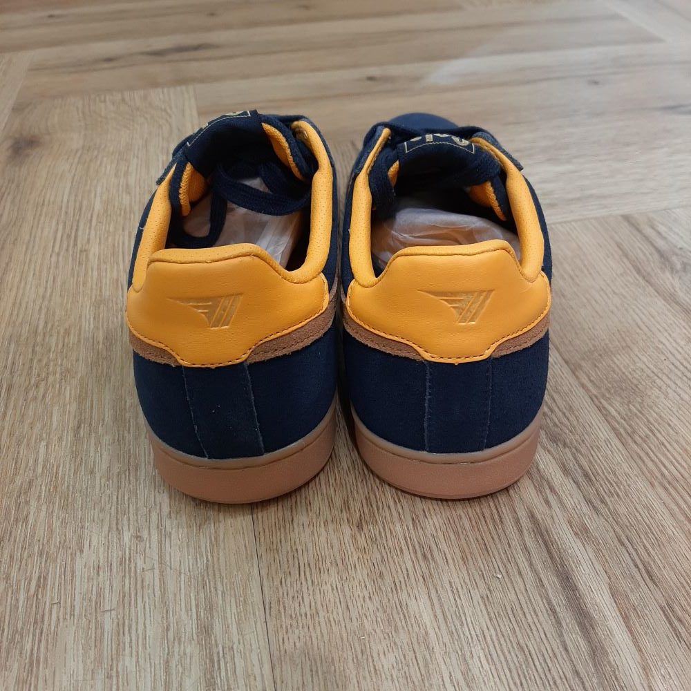 En matière de baskets fiables, les Gola Equipe Navy Suede pour homme est un choix sûr. Monté sur une semelle en gomme, ce modèle à lacets en daim bleu marine épuré avec bordure en forme d’aile Gola gingembre est polyvalent et peut être facilement associé à des looks de tous les jours. La languette de talon en soleil foncé apporte une finition remarquable, équilibrant le moderne avec l’héritage authentique des baskets.