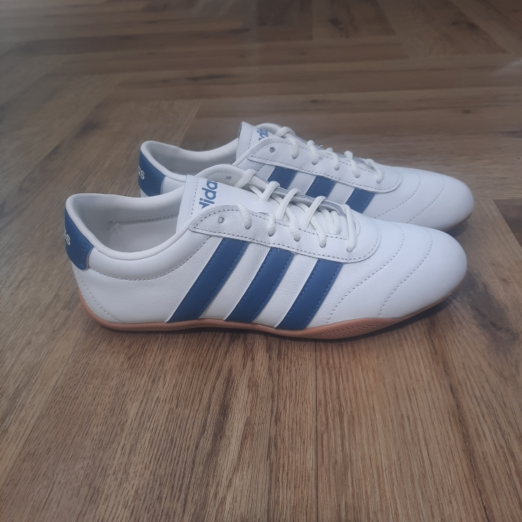 Chaussant standard Fermeture à lacets Tige en cuir et synthétique Doublure textile Semelle extérieure en caoutchouc Couleur du produit : White / Blue Code du produit : JQ7238
