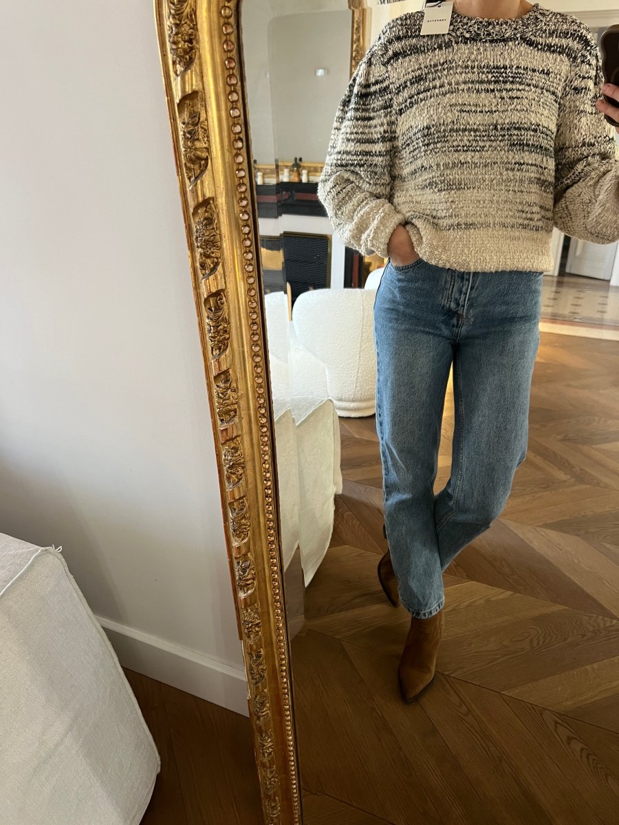 Ba&sh- Pull ecru à rayures et boutons diamants