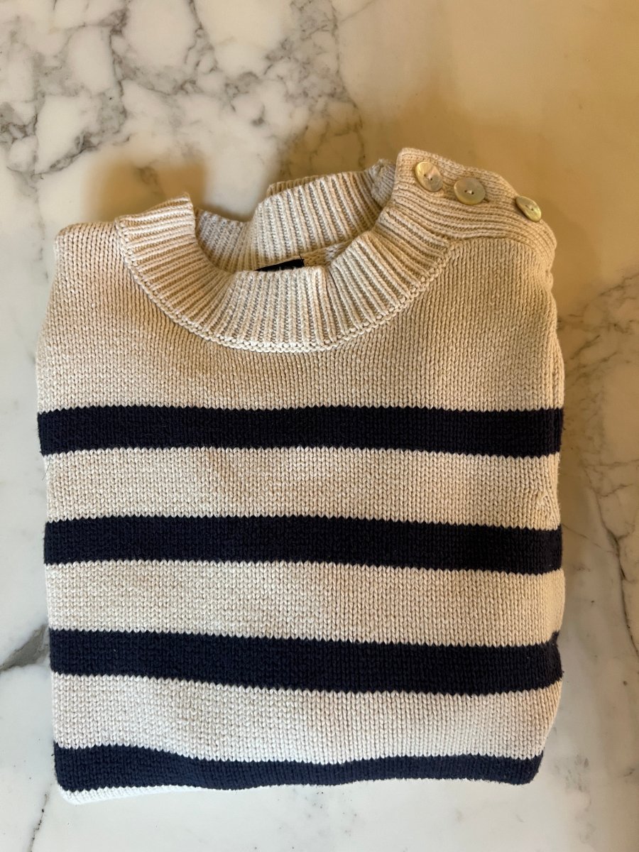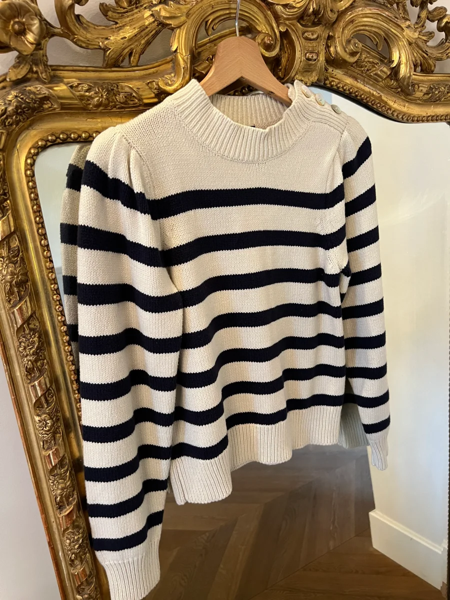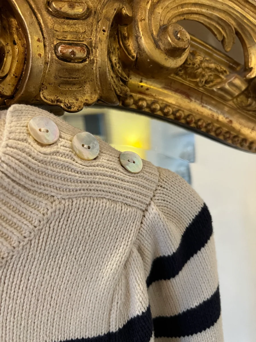 Jade Leboeuf – Rails Pull à rayures beige et bleu marine T.XS