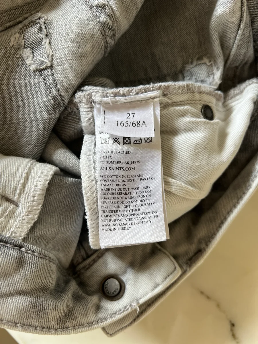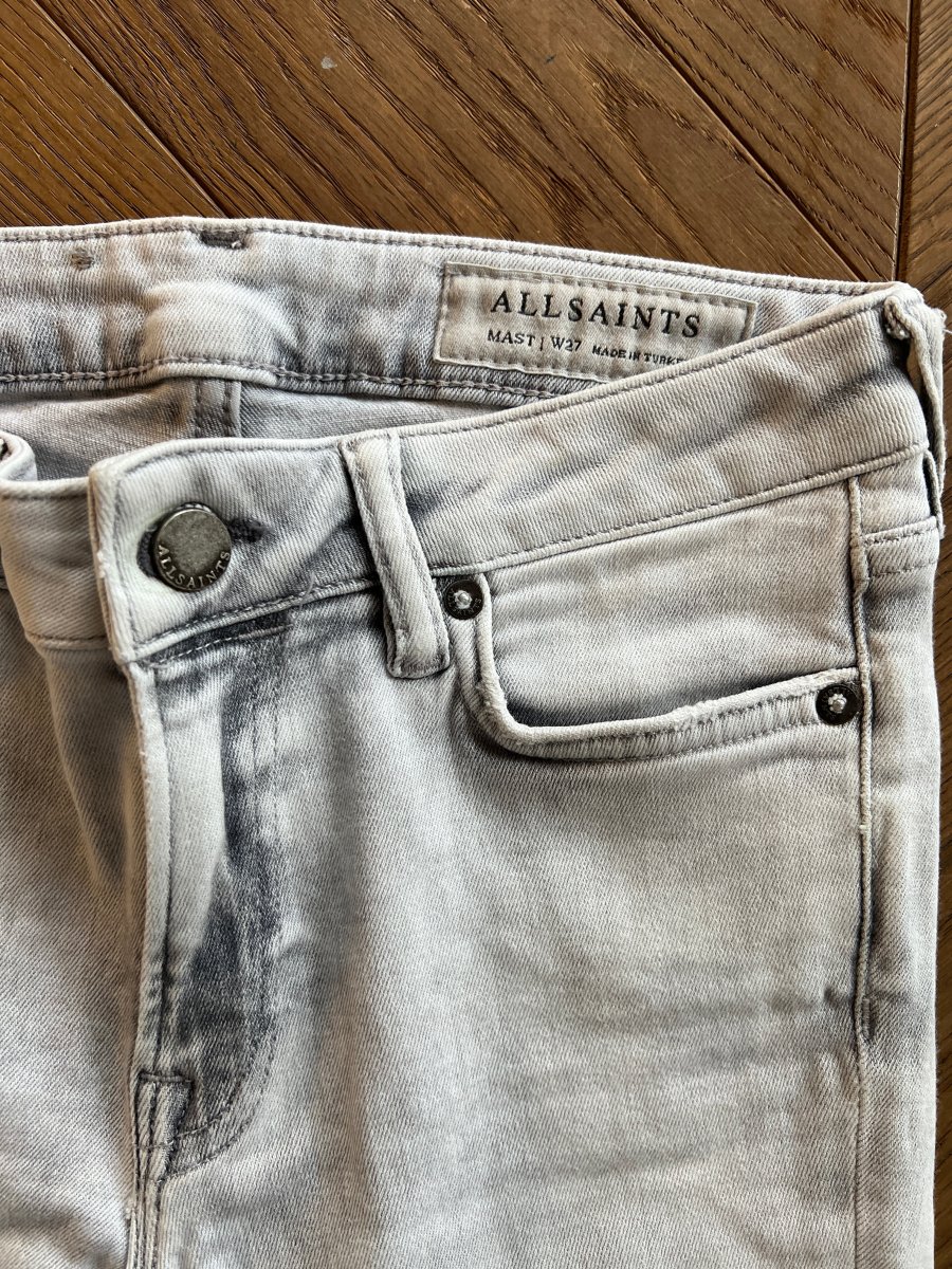 Très bon état comme Neuve Taille 27 (34-36) Marque: AllSaints Coton et Elasthane Pour la longueur, je mesure 1m71 Prix d’achat estimé neuf 159€