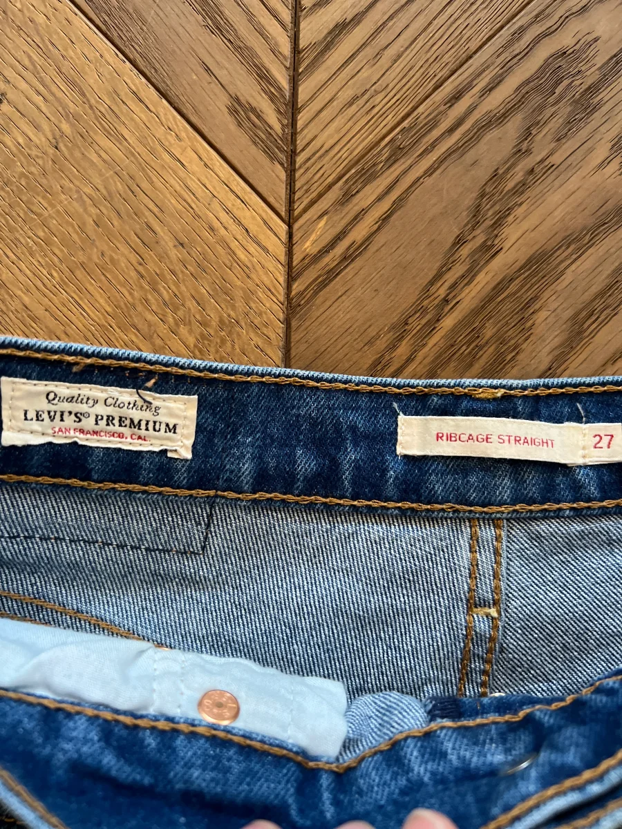 Très bon état Marque : Levis Ribcage Straight Taille 27- L29 Coton et Elasthane Pour la longueur je mesure 1m71 Prix d’achat estimé neuf 130€
