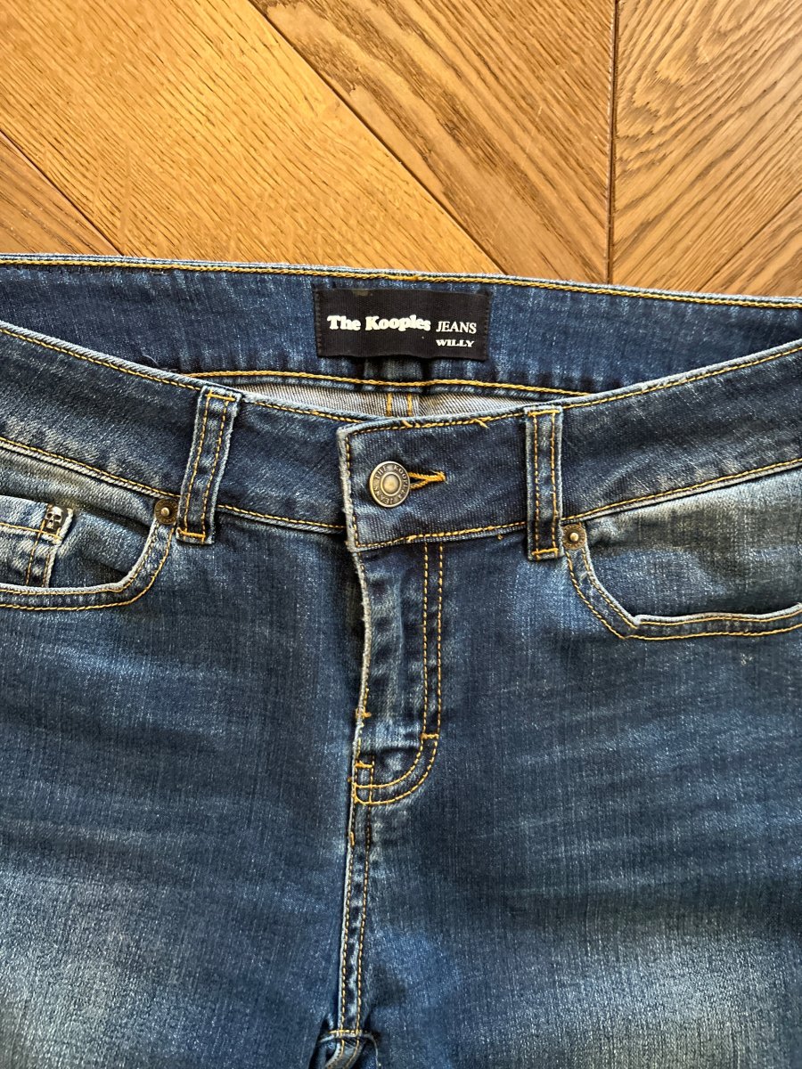 Très bon état général Taille 25 Marque : The Kooples Jeans Coton, polyester et Elasthane Pour la longueur je mesure 1m71 Prix d’achat estimé neuf 185€