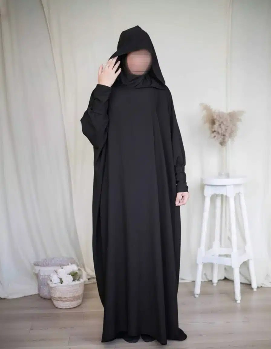 Le Jilbeb à capuche est une tenue islamique à avoir absolument à porter de main. En effet, lorsque retentit l’Adhan ou qu’un inconnu sonne à notre porte, nous avons tendance à nous précipiter sur le premier hijab femme à portée de main sans forcément porter une tenue légiférée adéquate qui remplissent les conditions du voile et celles de la tenue de prière. Nous vous proposons donc ce jilbeb enfilable absolument pratique et fort confortable. Il se compose d’une tunique musulmane ample, d’un hijab intégré et d’une capuche. Le hijab en jersey est cousu dans la robe abaya en jersey également…
