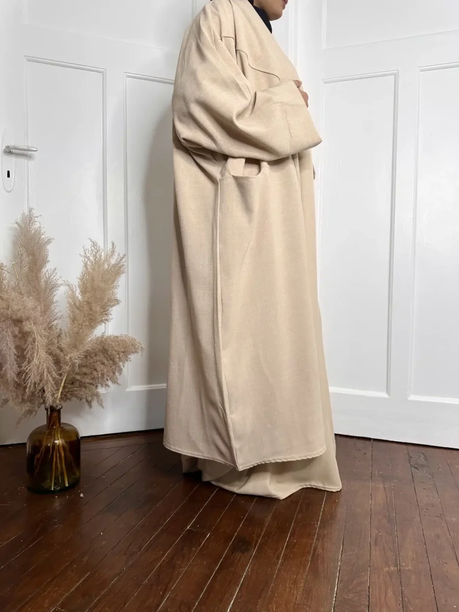 Le Kimono Lin Ashley de Moonia est une pièce maîtresse à ajouter à votre garde-robe. Sa coupe papillon Farasha et ses manches larges lui confèrent une allure élégante et raffinée. Parfait pour la femme musulmane, il couvre parfaitement les formes et complète idéalement toutes vos tenues.