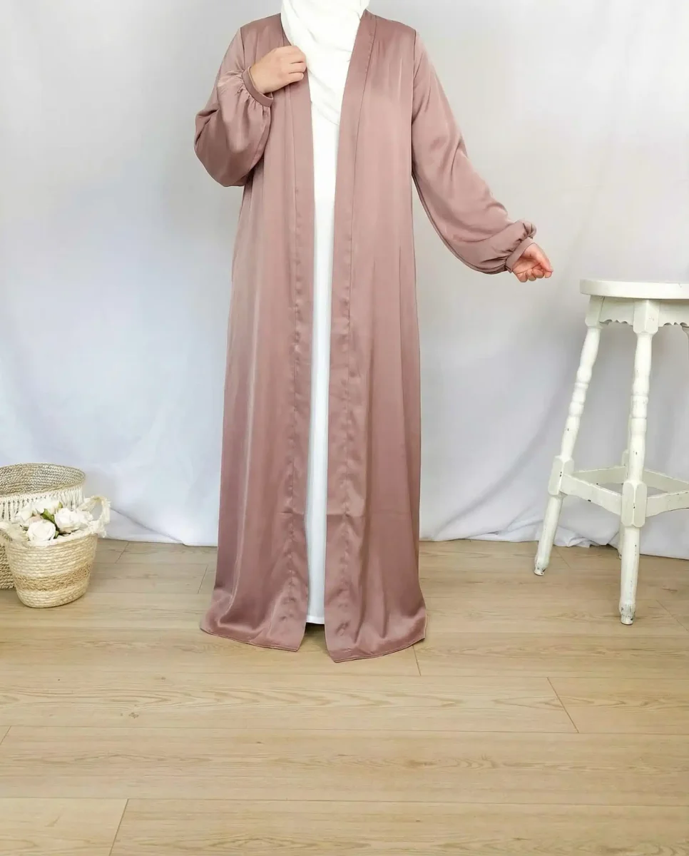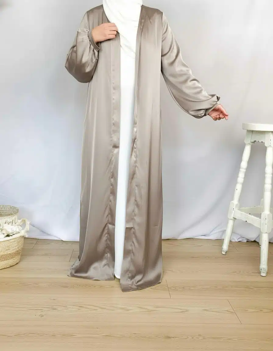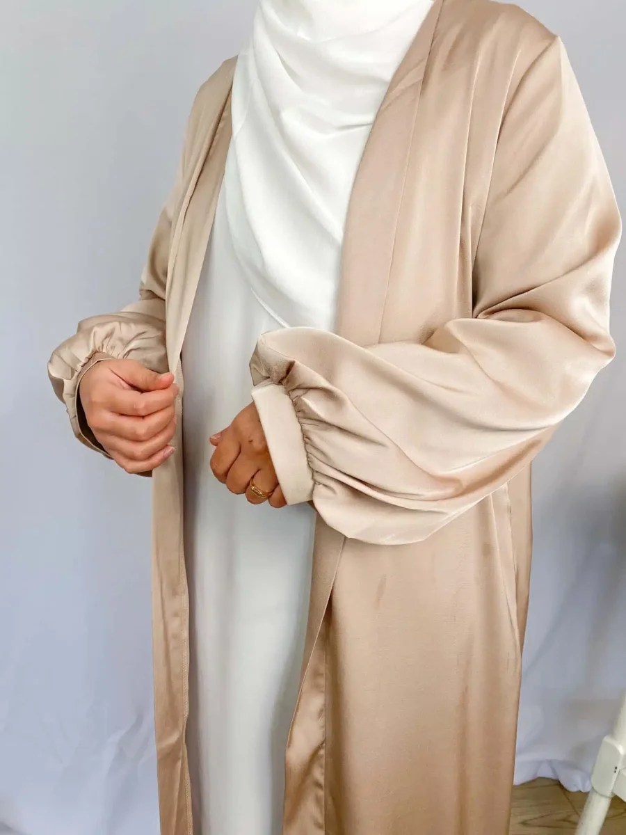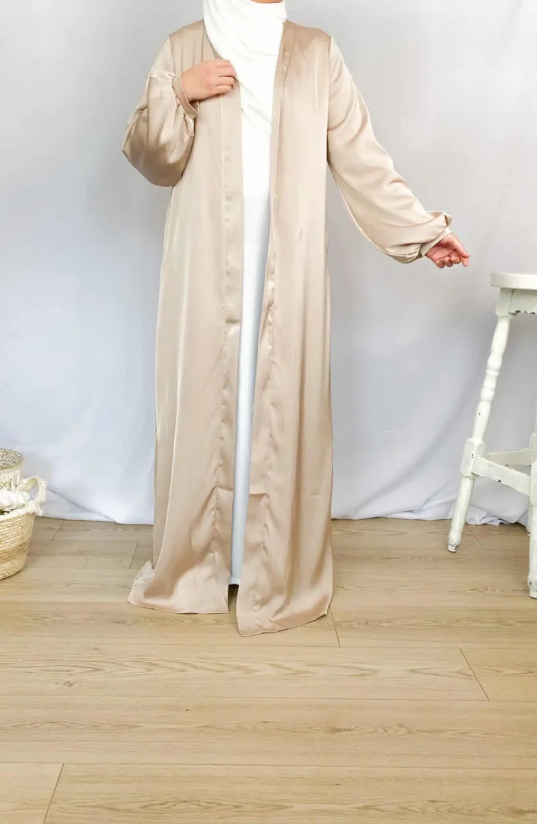 Ce kimono tissu satiné fait partie de notre large gamme de kimono originaux qui vous feront craquer. Ce kimono ample à manches ballon bouffantes sera idéal pour vos évènements notamment pour les fêtes de l’Aïd mais également pour toutes les occasions. Fluide et agréable au toucher, cette abaya ouverte possède un côté minimaliste qui la démarque et qui fera de vous une vraie princesse musulmane voilée moderne. Ultra tendance, c’est un basique que chaque femme musulmane devrait avoir dans son dressing. Il peut être porté avec une large robe longue ou une jolie abaya islamique et le vêtir d’un maxi…