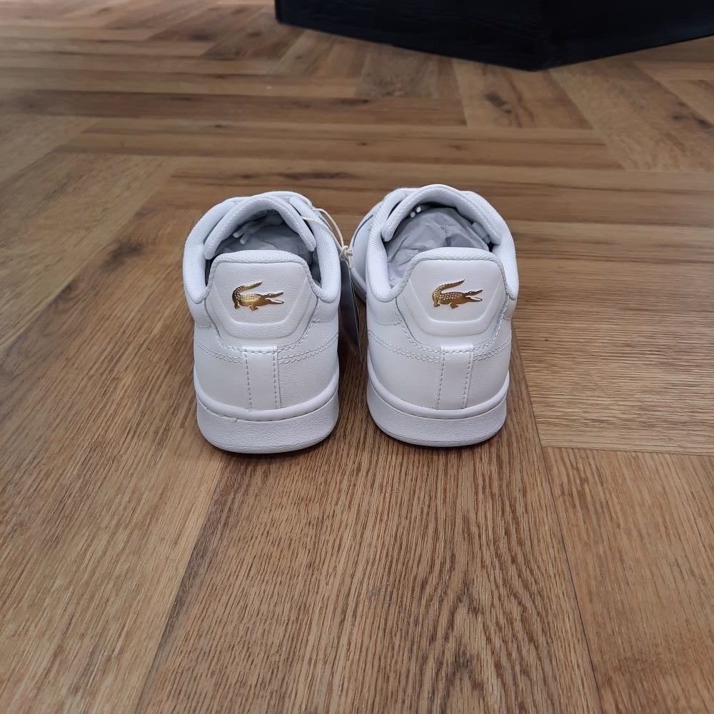 Tige en cuir Doublure en mesh Semelles extérieures en caoutchouc Crocodile doré métallisé sur le côté Logo Lacoste en fil doré gravé sur la languette et le talon Tige: 95% Cuir 5% Polyuréthane; Doublure: 100% Polyester recyclé; Semelle intérieure: 100% Polyester; Semelle extérieure: 100% Caoutchouc REF. 47SFA0040