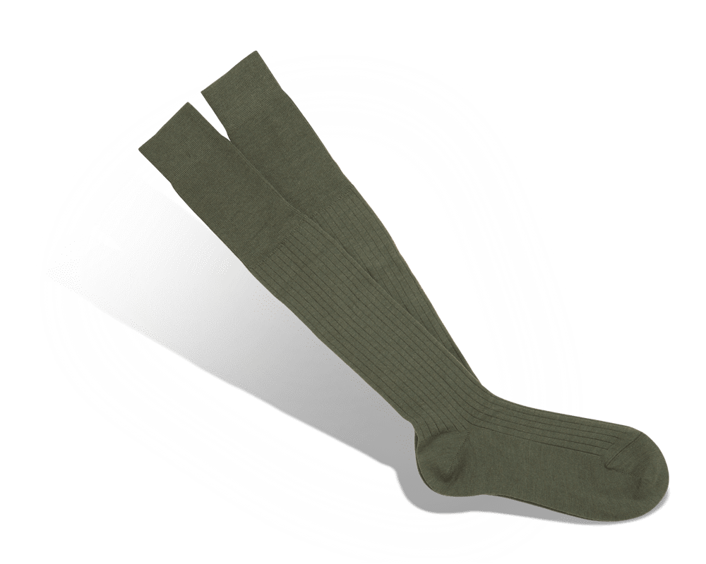 Chaussettes unies vert kaki en laine. Mélange laine mérinos 80% , polyamide 20%. Fabriqué en Italie.