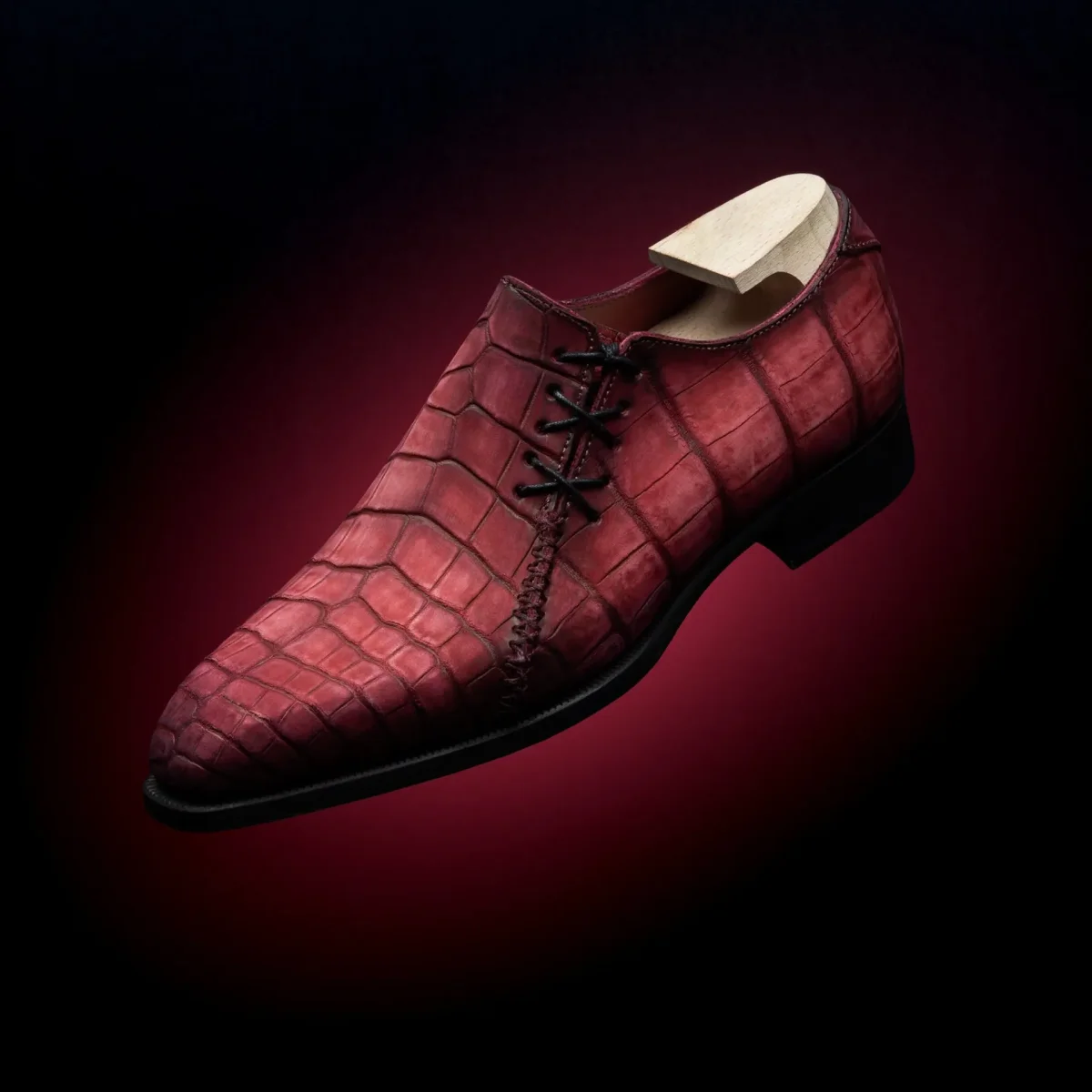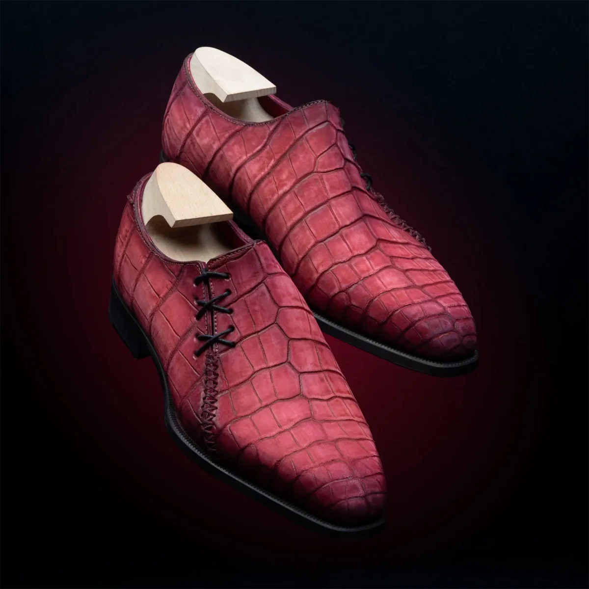 Le Lucas, richelieu à laçage latéral et cuir de crocodile rouge finition mate