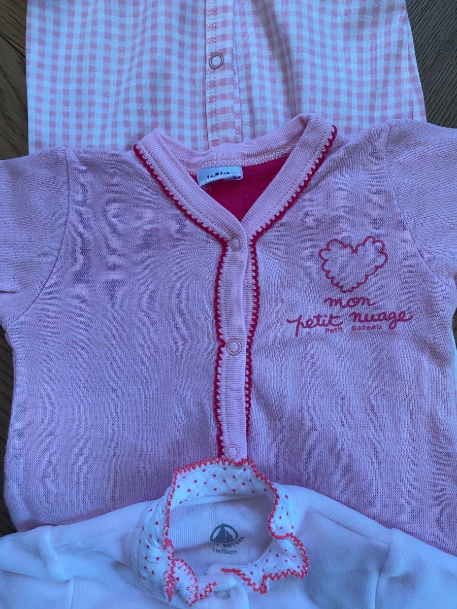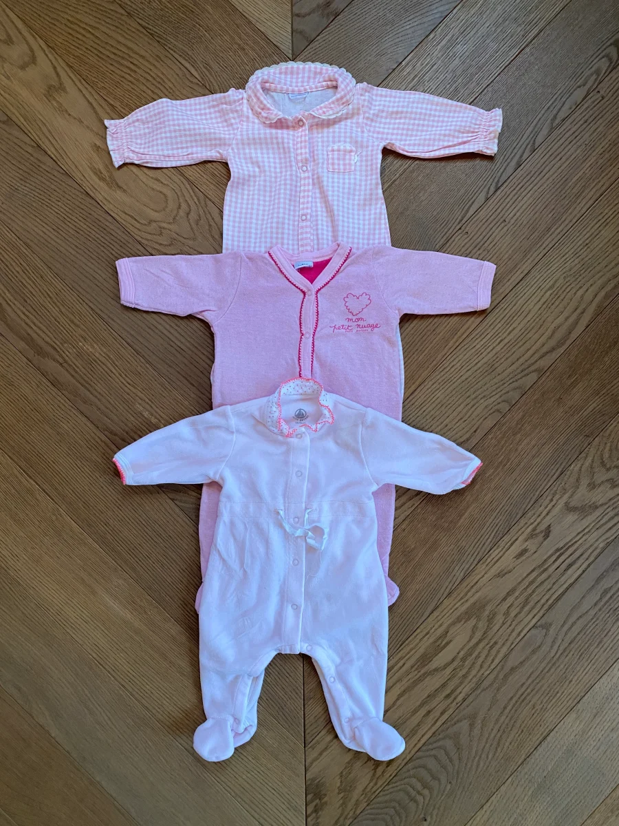 Lot de 3 dors-bien Petit Bateau rose 1 mois