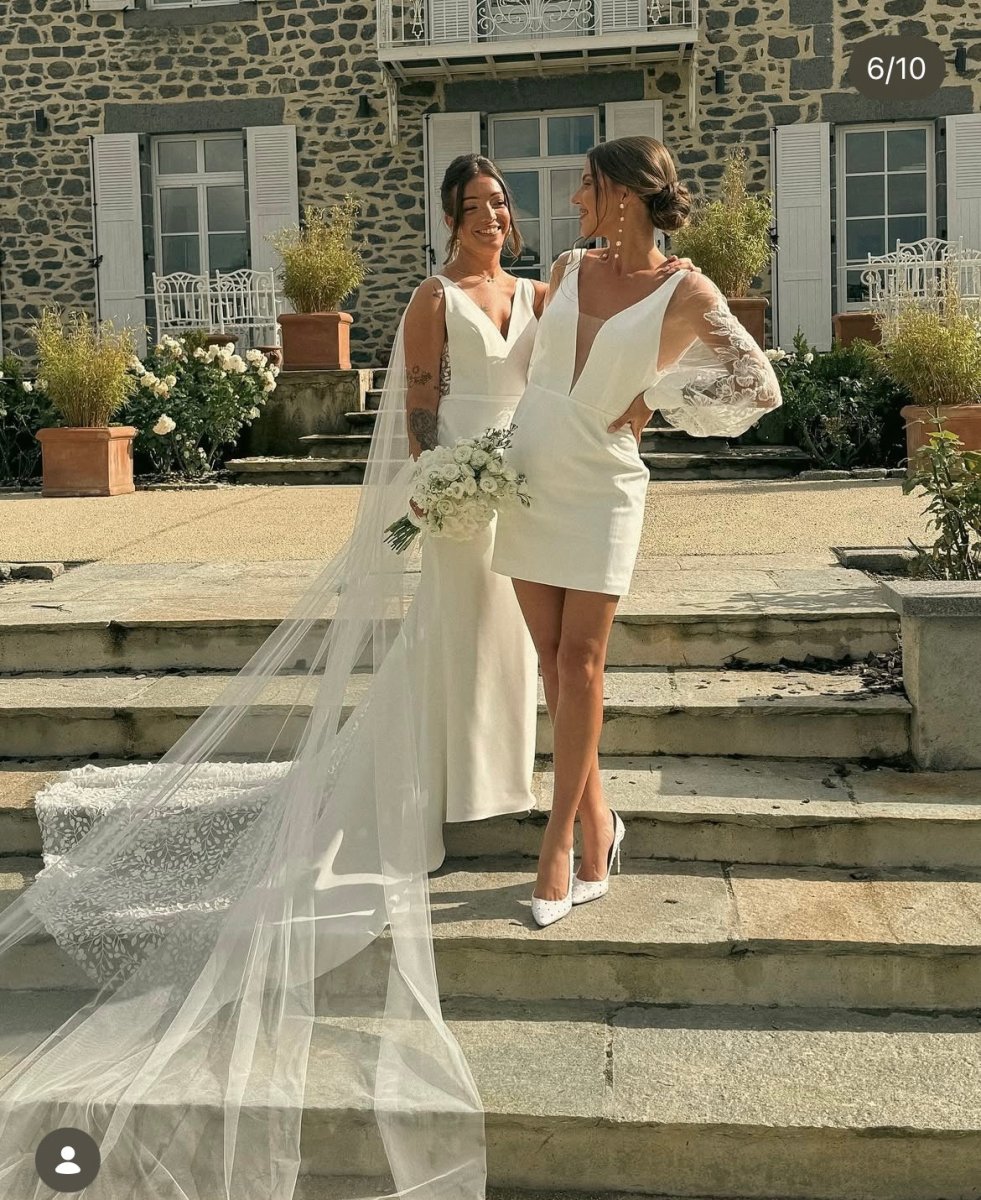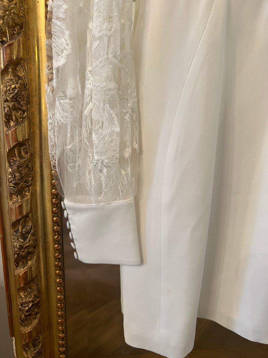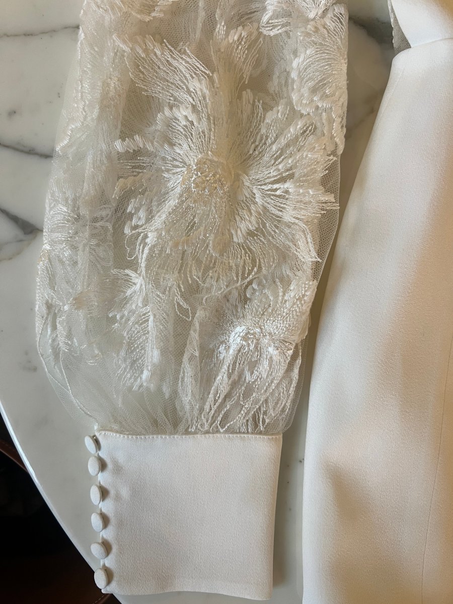 Lucie Gabossi – Rime Arodaky Robe blanche manches en tulle brodé fleuri
