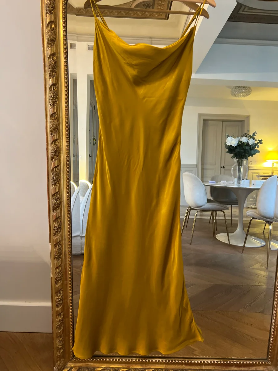 Lucie Gabossi – Zara Robe dorée longue bretelles