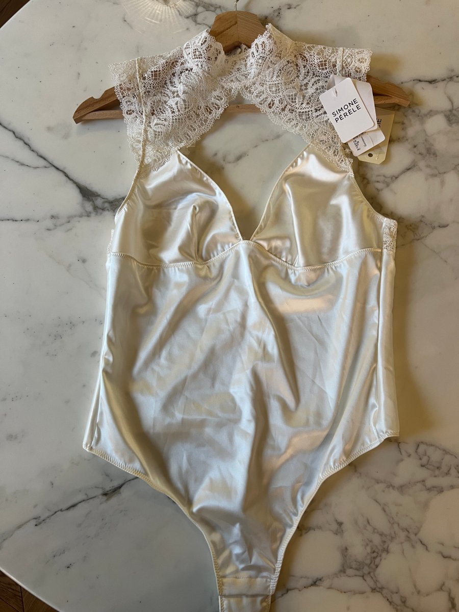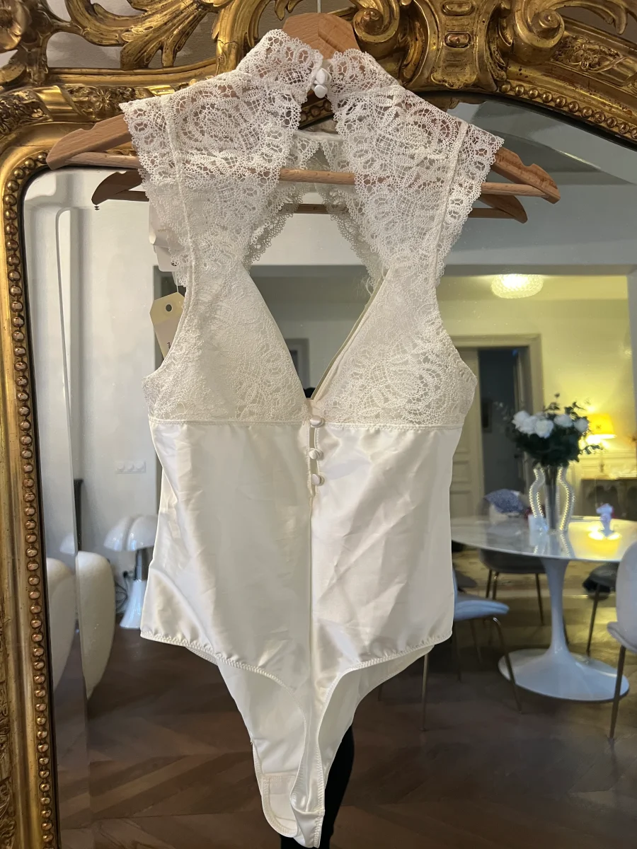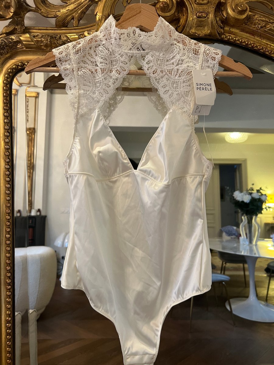 Lucie Gobassi – Simone Pérèle Body symphanie blanc satiné Neuf T1