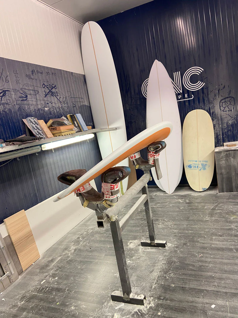Pour la petite histoire et le jeu de mot, du côté d’Haleiwa sur le northshore d’Oahu il est commun d’aller s’acheter une glace locale nommé la « shave ice » (glace pilé avec du sirop). Notre shaper n’ayant plus un poil sur le cailloux nous nous avons pensé judicieux de lui faire un petit clin d’oeil.