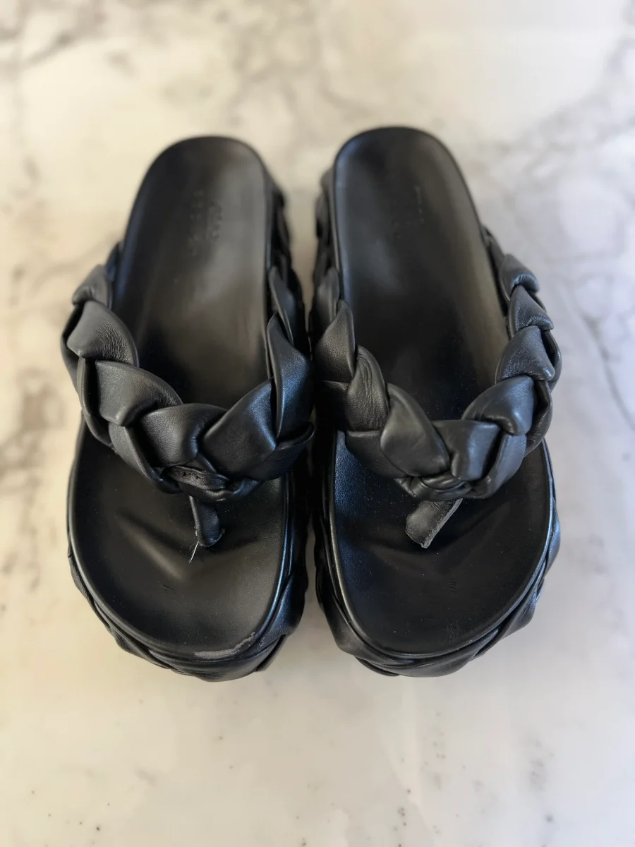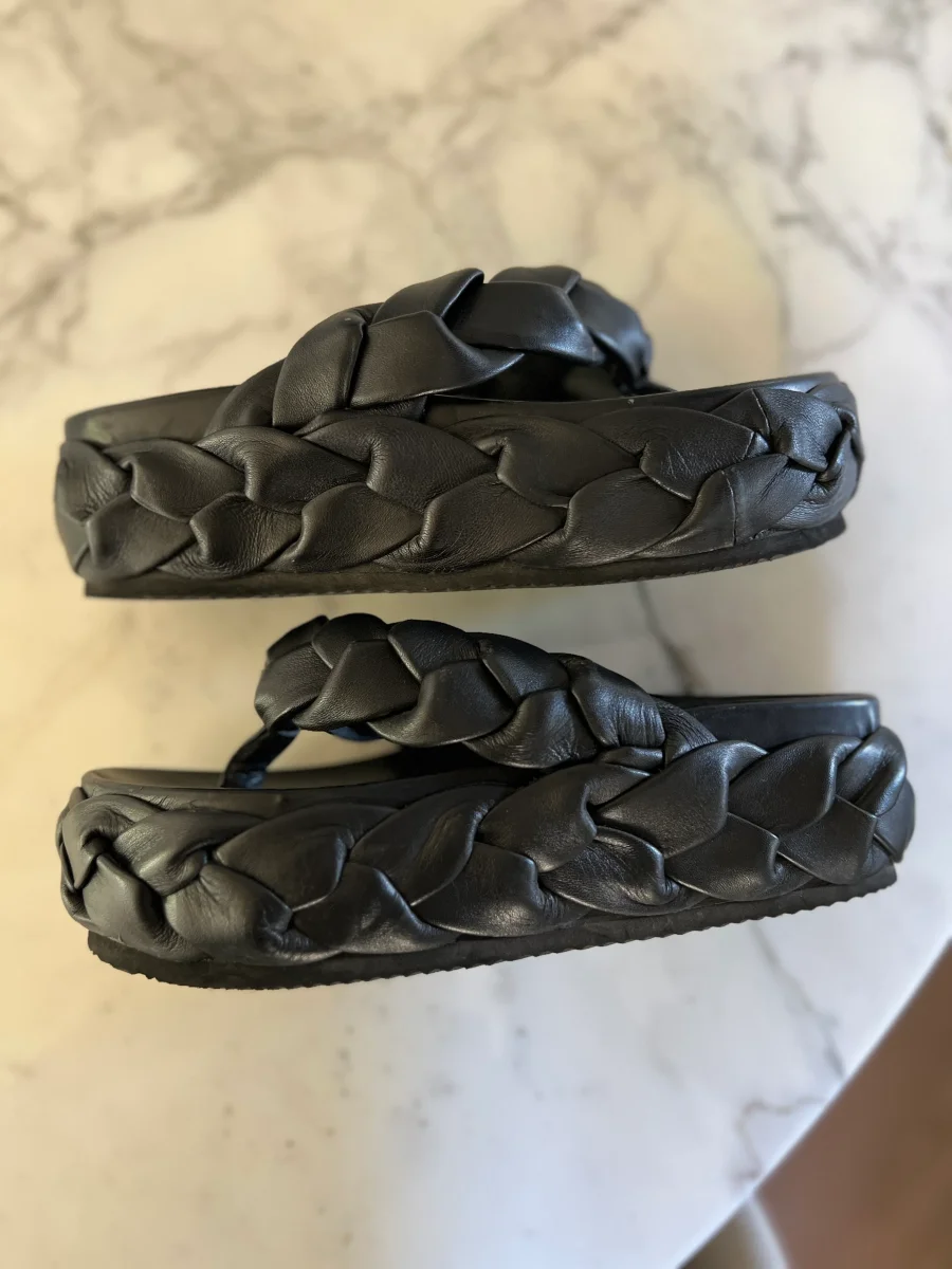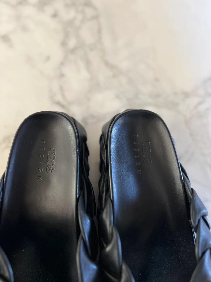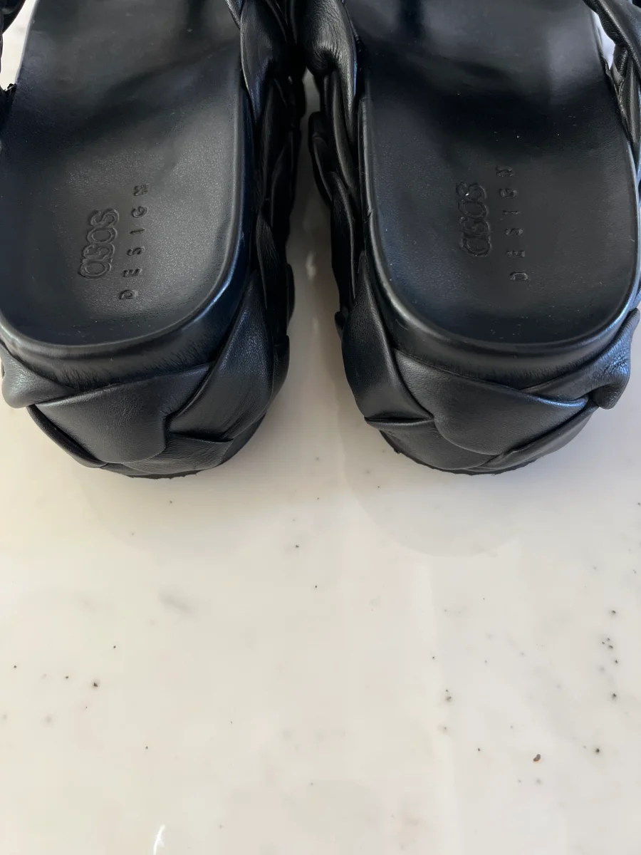 Malika Menard Sandales compensées Asos tressées en cuir avec entredoigt noires