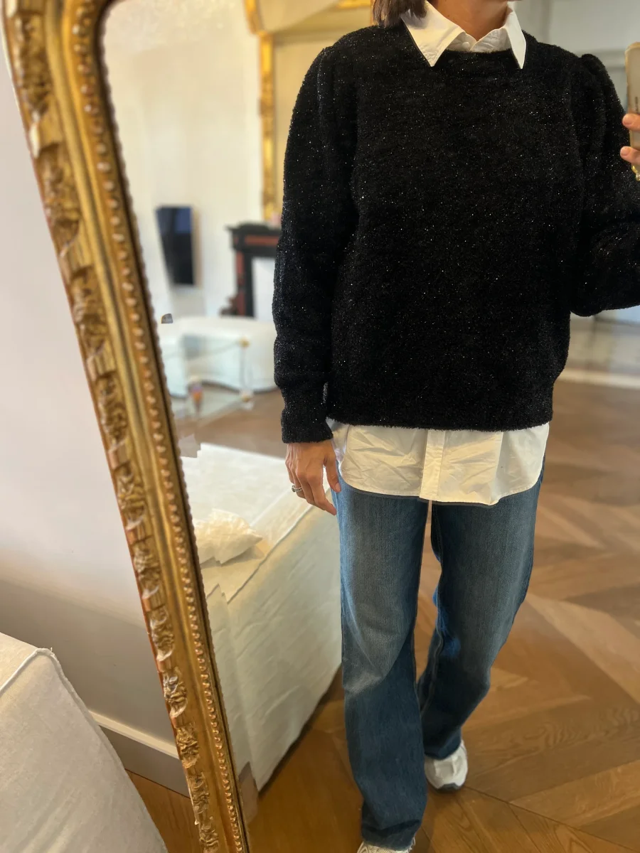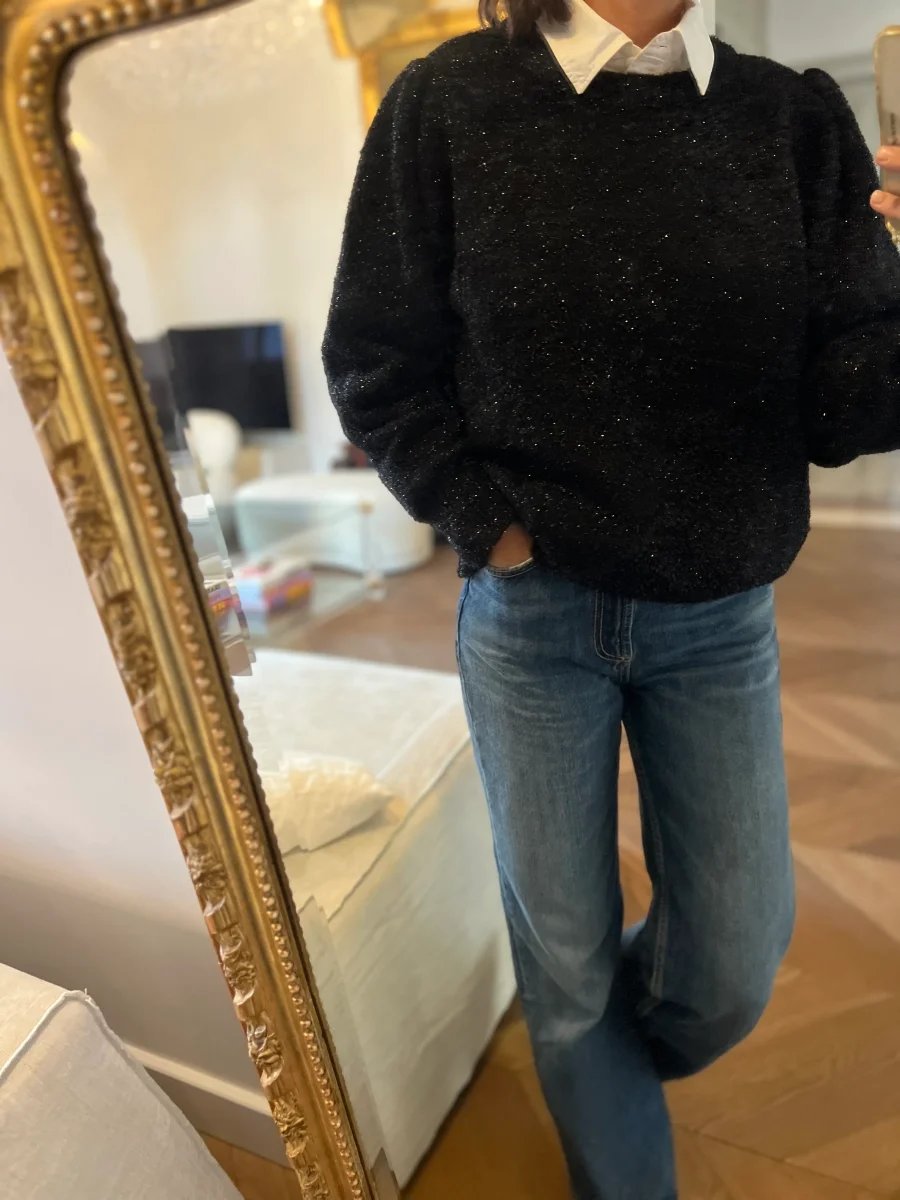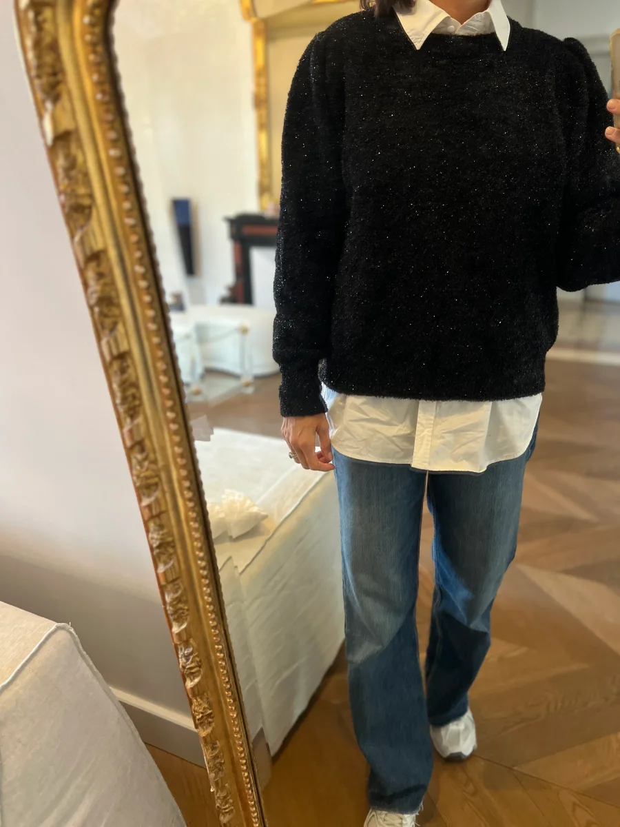 Ba&sh- Pull ecru à rayures et boutons diamants