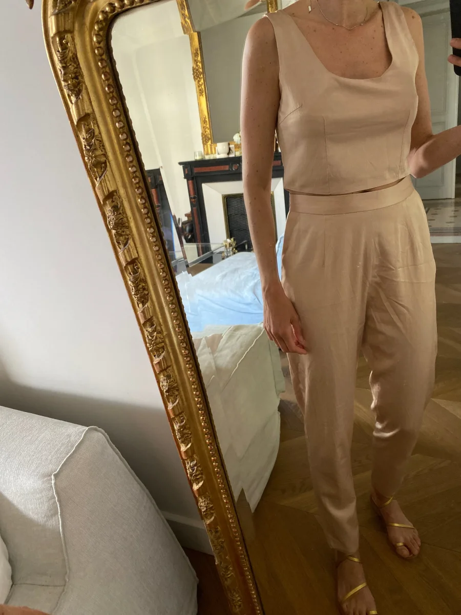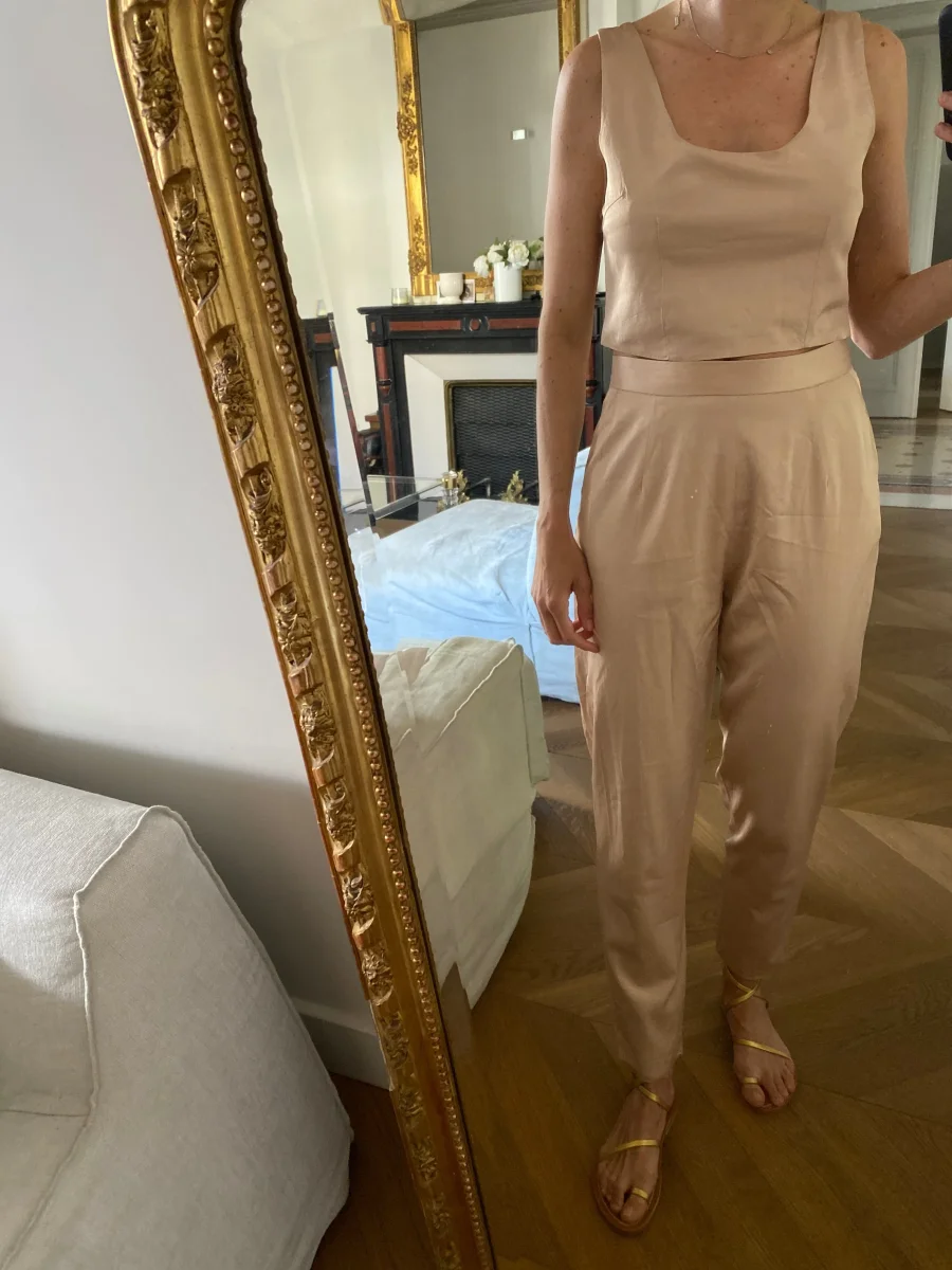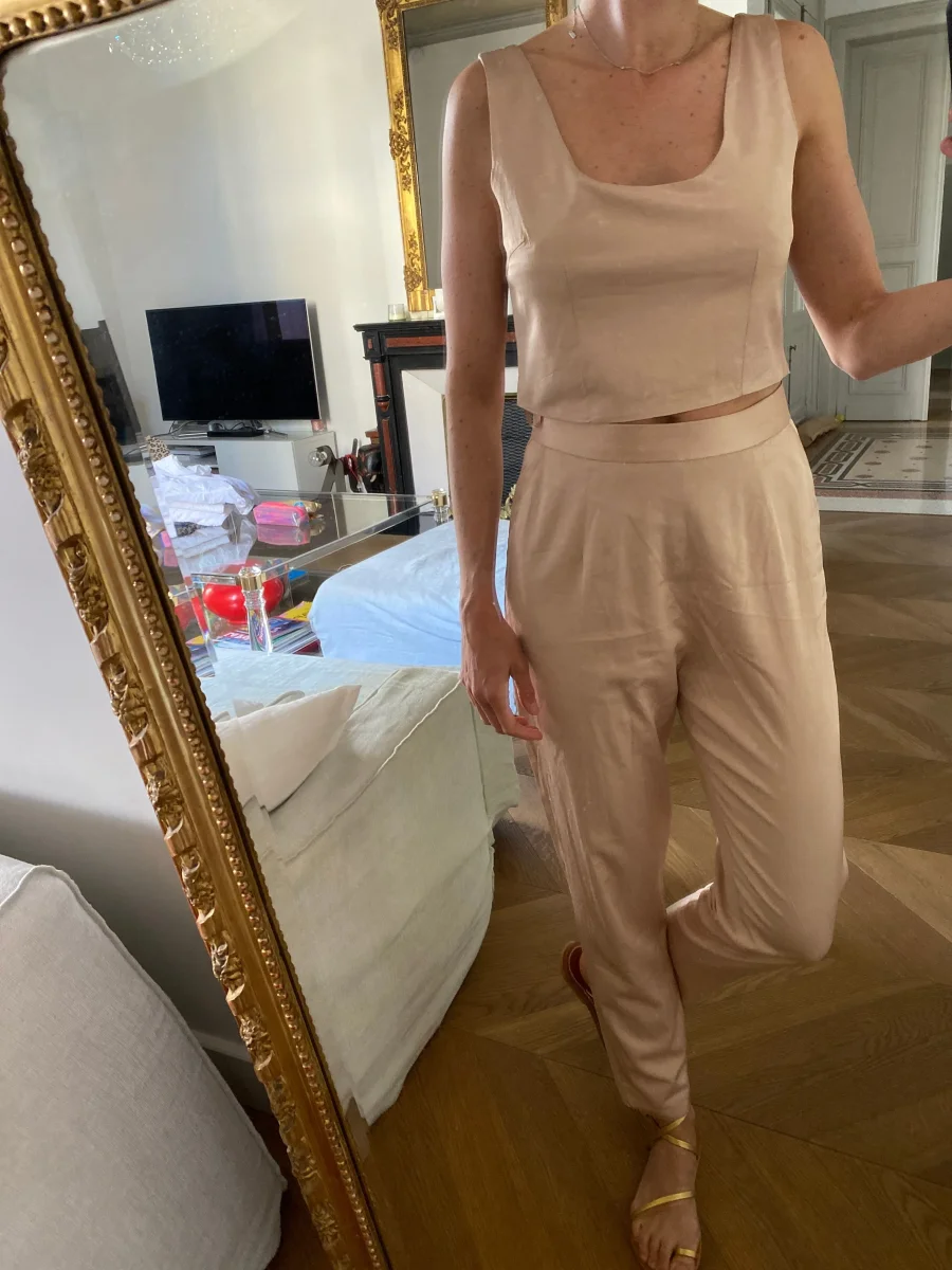 Très bon état Marque : Winona Taille 8 = 36 97% Cupro 3% Spandex Doublure : 100% Polyester Pour la longueur je mesure 1m71 Prix d’achat estimé neuf 288€