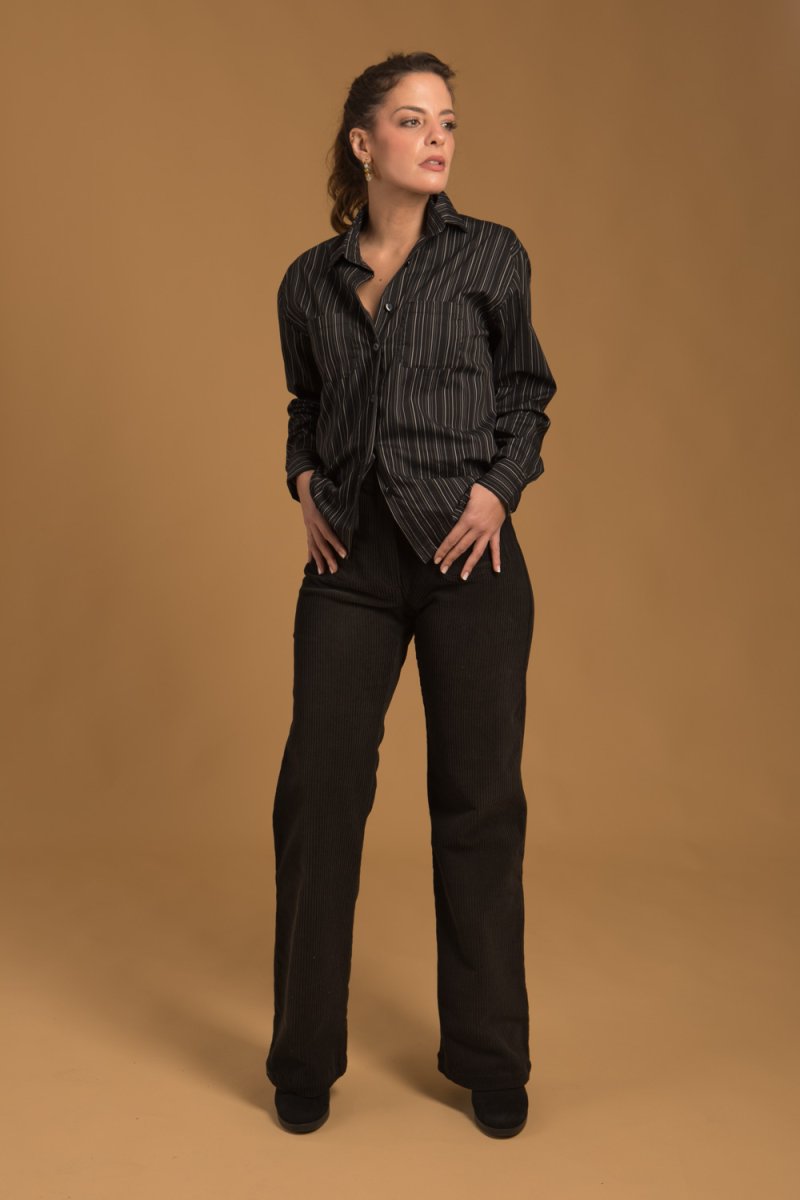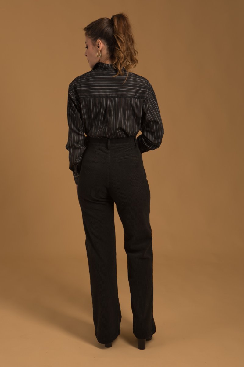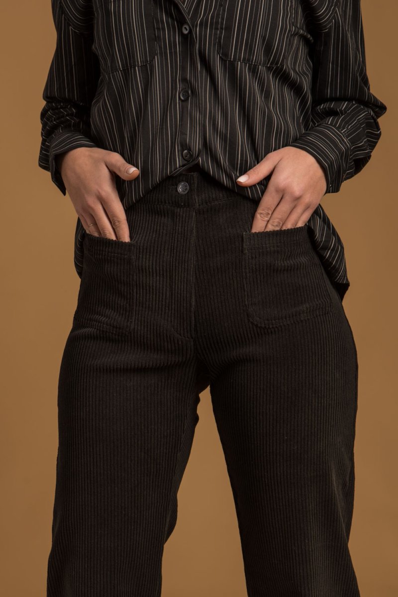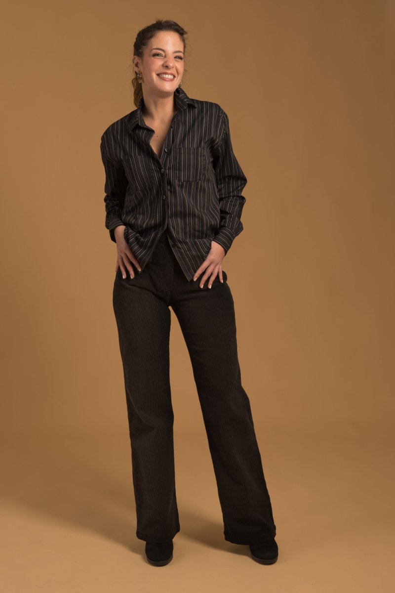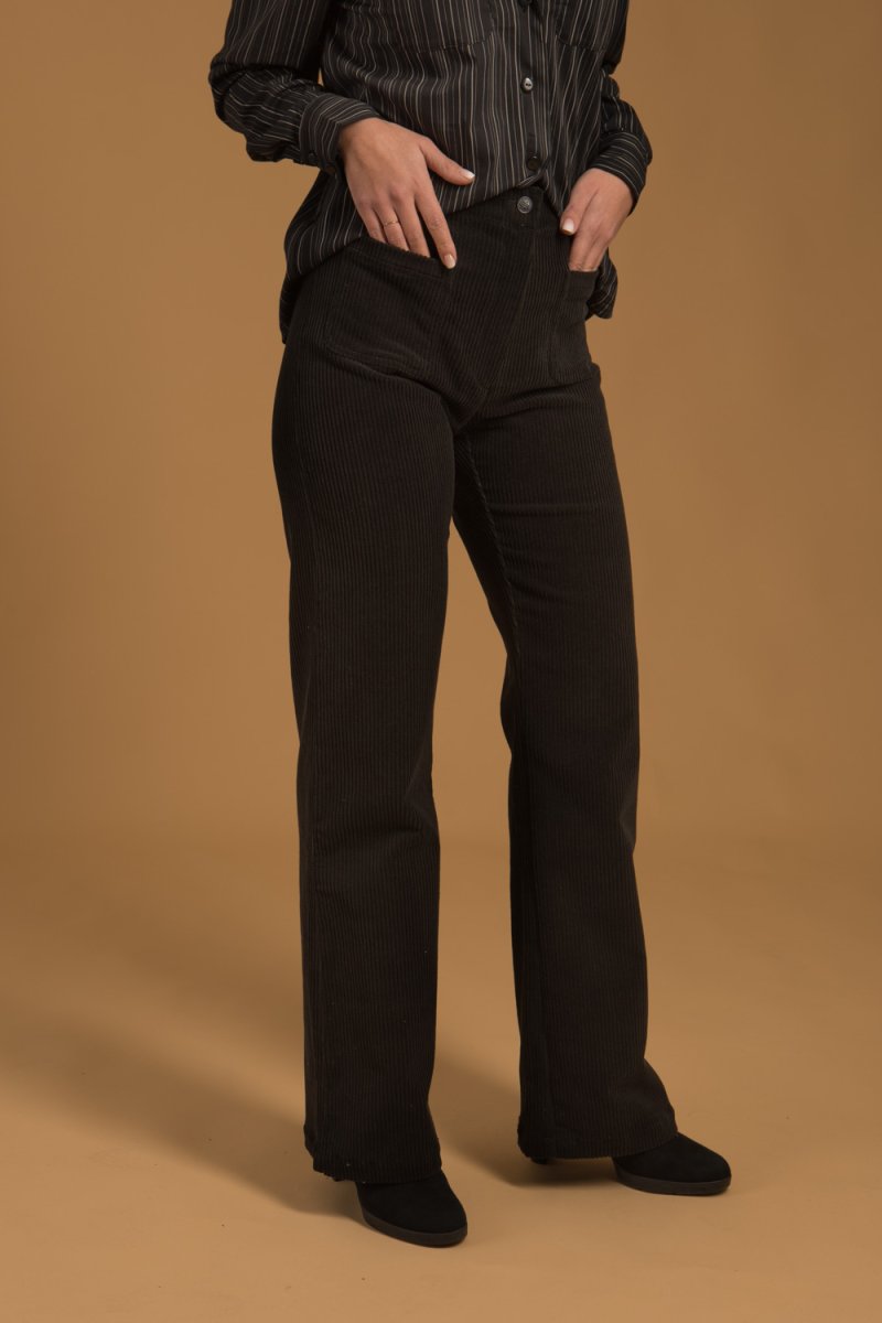 Le pantalon en velours noir femme, confectionné dans un tissu 100% Français.
