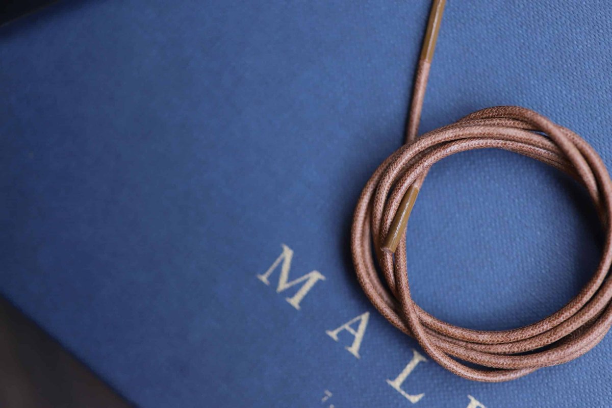 A singular beauty sometimes emanates from ordinary everyday objects. The Saphir Médaille d’Or shoe lace is one of them. Out of its case, its fine, extremely dense mesh strikes the eye. Then this pleasant sensation of « flexible stiffness ». The French poet Francis Ponge would certainly speak about it better than we do, since it is an object-poem. Perhaps he would compare it to the fragile tail of a small mammal because of it’s finely ridged leather texture, shining on its surface by the waxing and glaze that it receives when La Société Choletaise de Fabrication (Entreprise…