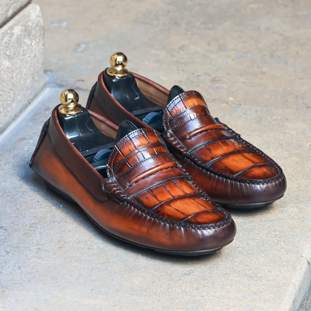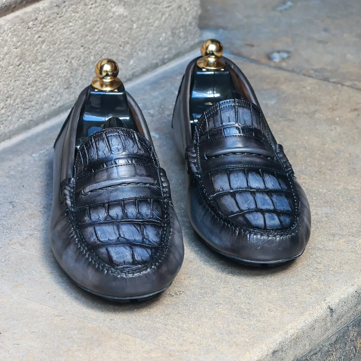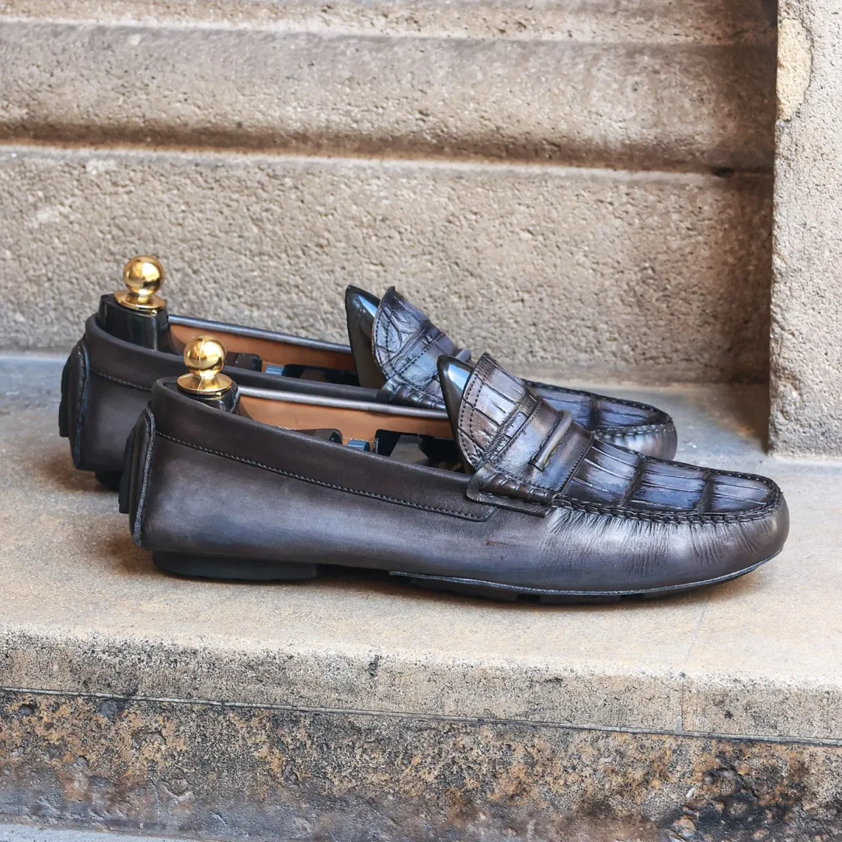 Le Mocassin Driver par Altan Bottier est réalisé en cuir de veau avec plateau cousu main en cuir de crocodile. Il allie un design résolument moderne avec la tradition et le savoir-faire artisanal de sa conception. C’est un mocassin souple et léger, pour un style décontracté-chic tout en confort!