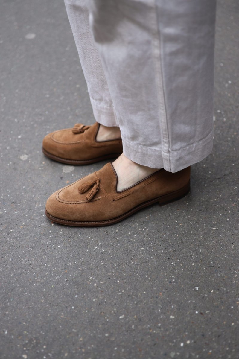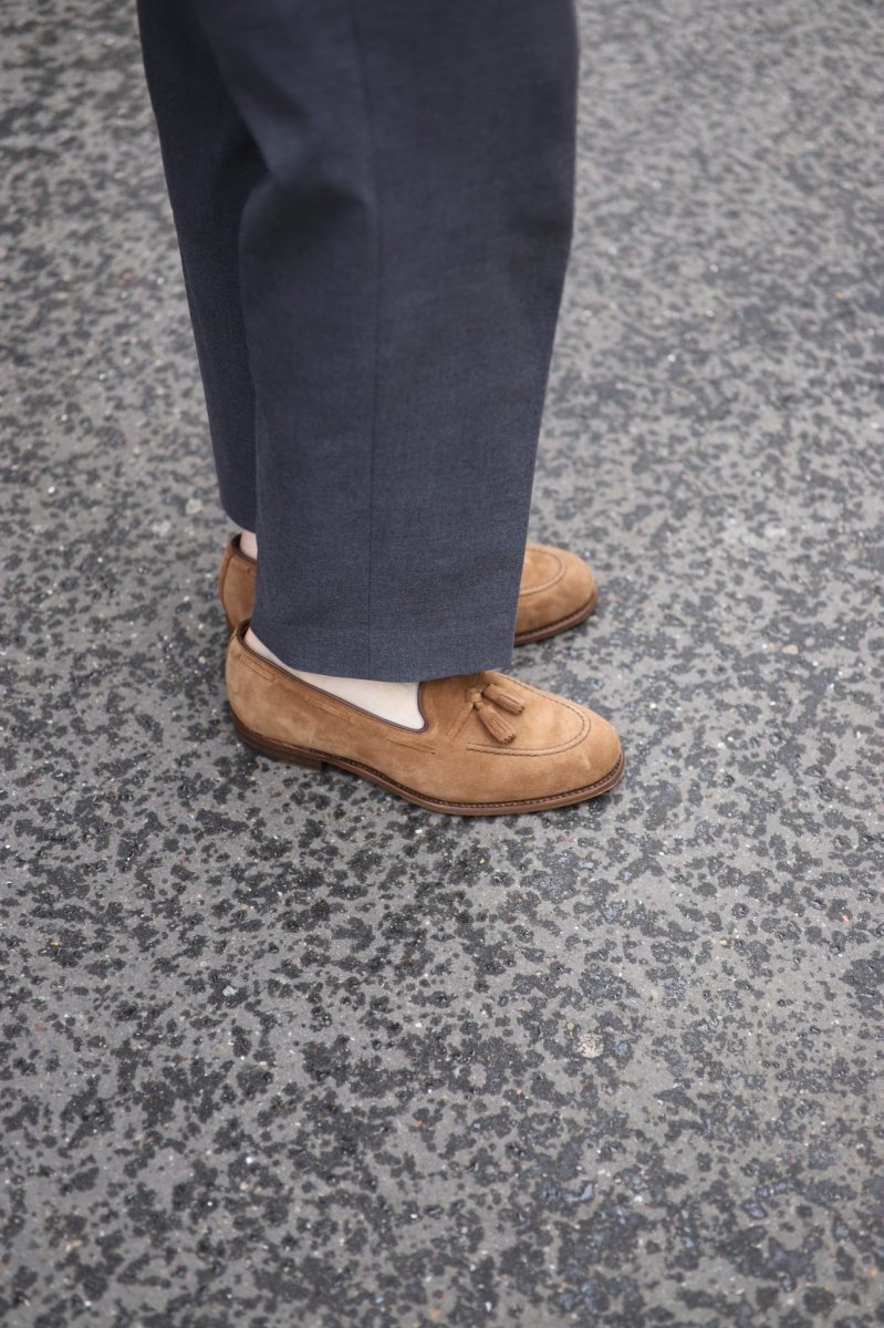 Bout ample (« à l’anglo-saxon »), bonnes proportions, chaussant confortable, dessinant un pied affuté et une silhouette nette, notre tassel se porte pieds nus ou non, glacé si on le veut pour sa version cuir lisse, il s’enfile en un éclair et s’avérera le bon choix pour le bon look dans ab-so-lu-ment toutes les situations.