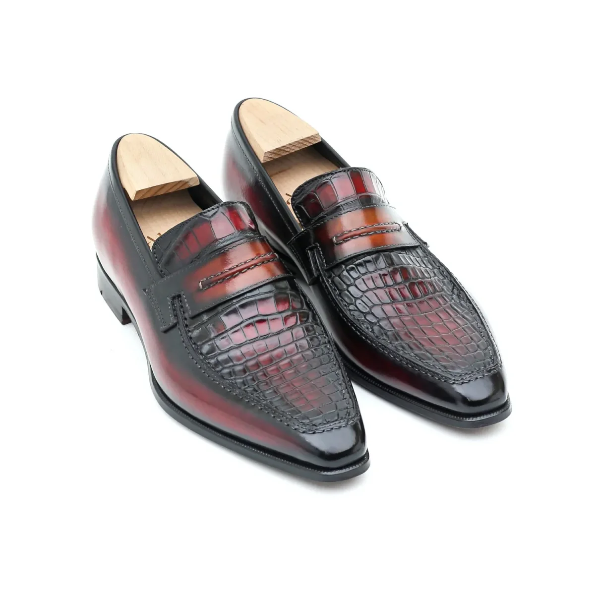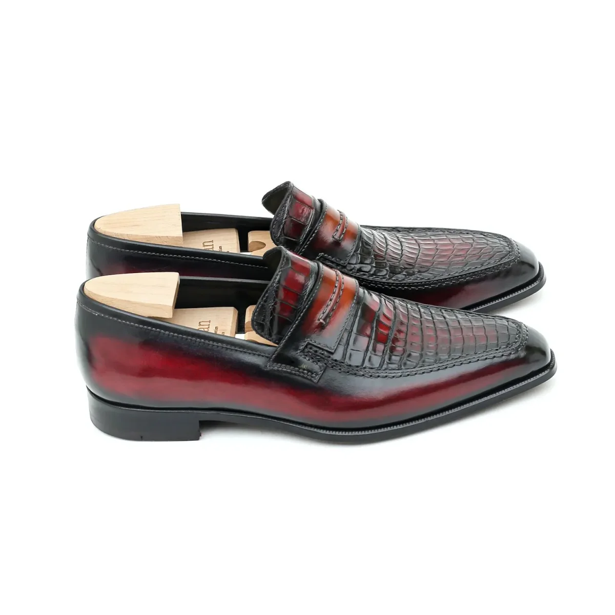 Le Lincoln 2 est notre nouvelle version de notre emblématique mocassin Le Lincoln. Nous en avons modifié le strap qui dorénavant propose une couture en rappel de celle du plateau. Il est ici présenté dans une version précieuse en bi-matière plateau en cuir de crocodile patiné et cuir de veau. N’hésitez pas à assortir votre paire de Lincoln avec une ceinture en crocodile patiné!