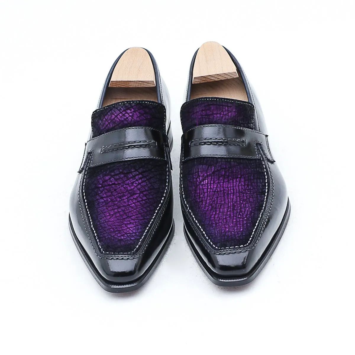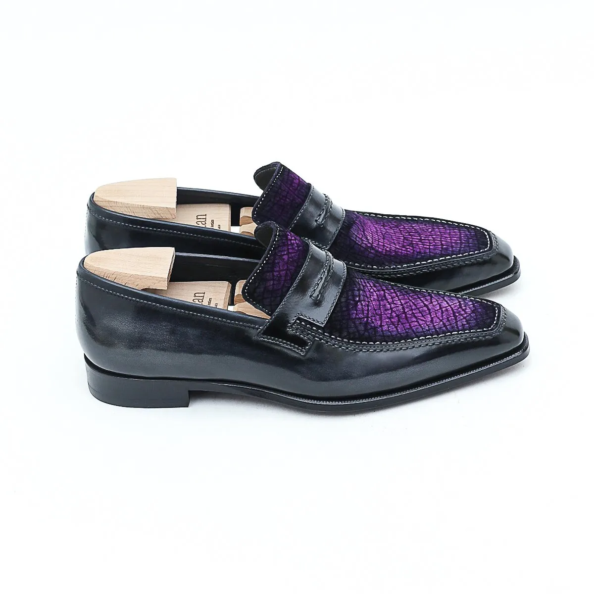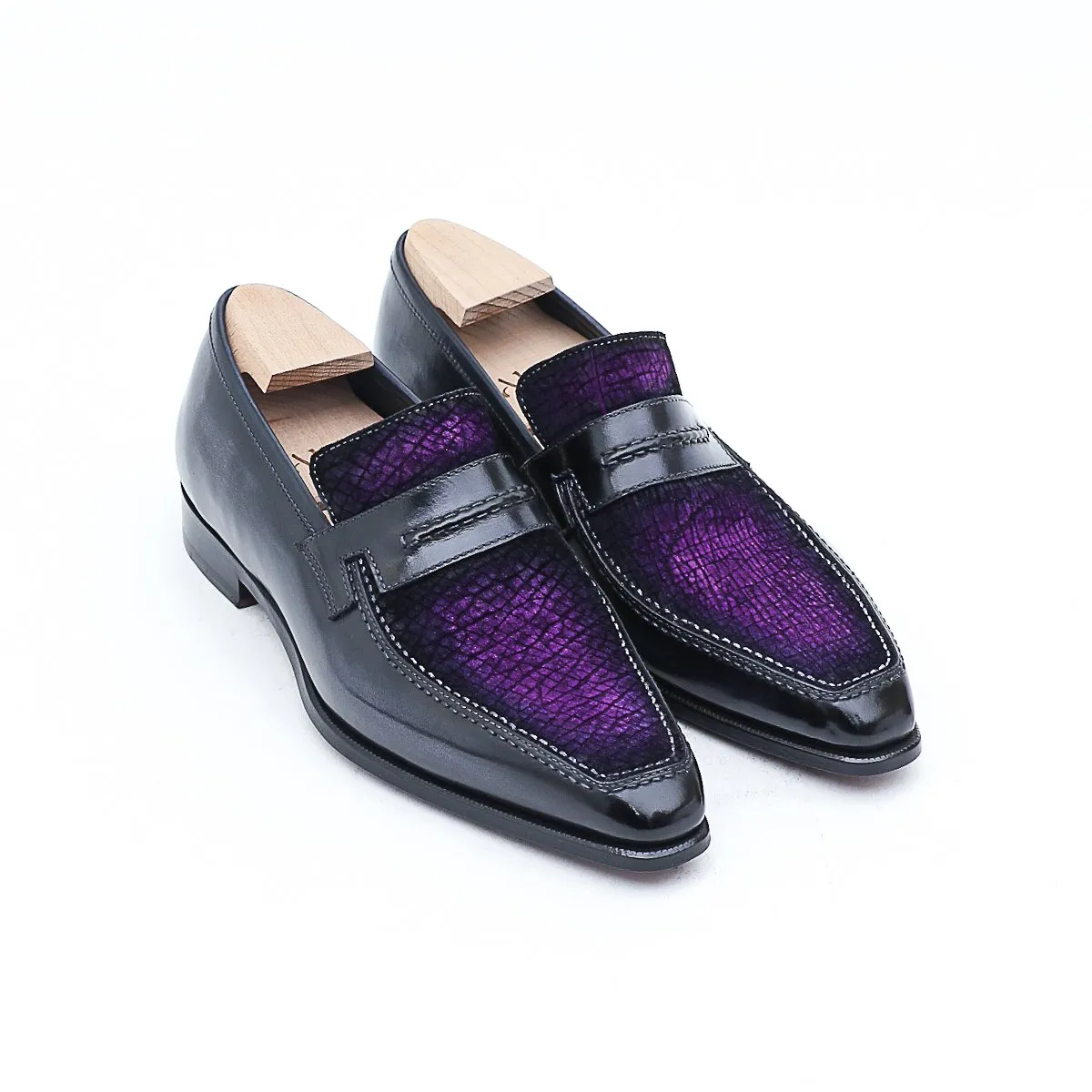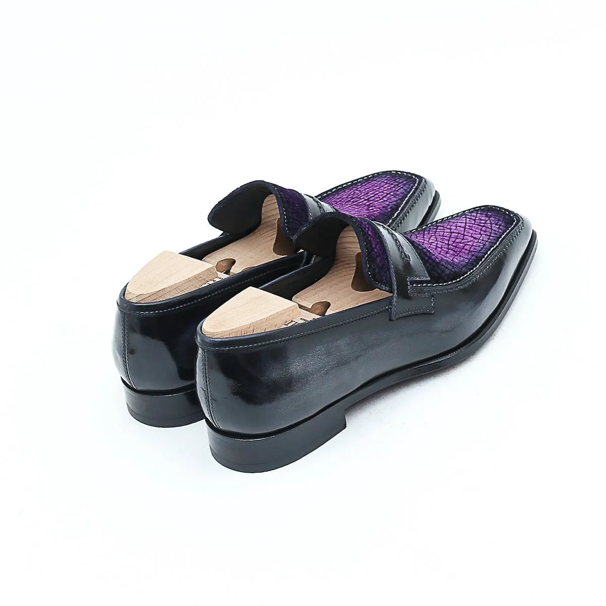 Le Lincoln 2 est notre nouvelle version de notre emblématique mocassin Le Lincoln. Nous en avons modifié le strap qui dorénavant propose une couture en rappel de celle du plateau. Il est ici présenté dans une version précieuse en bi-matière plateau en cuir d’hippopotame et cuir de veau.