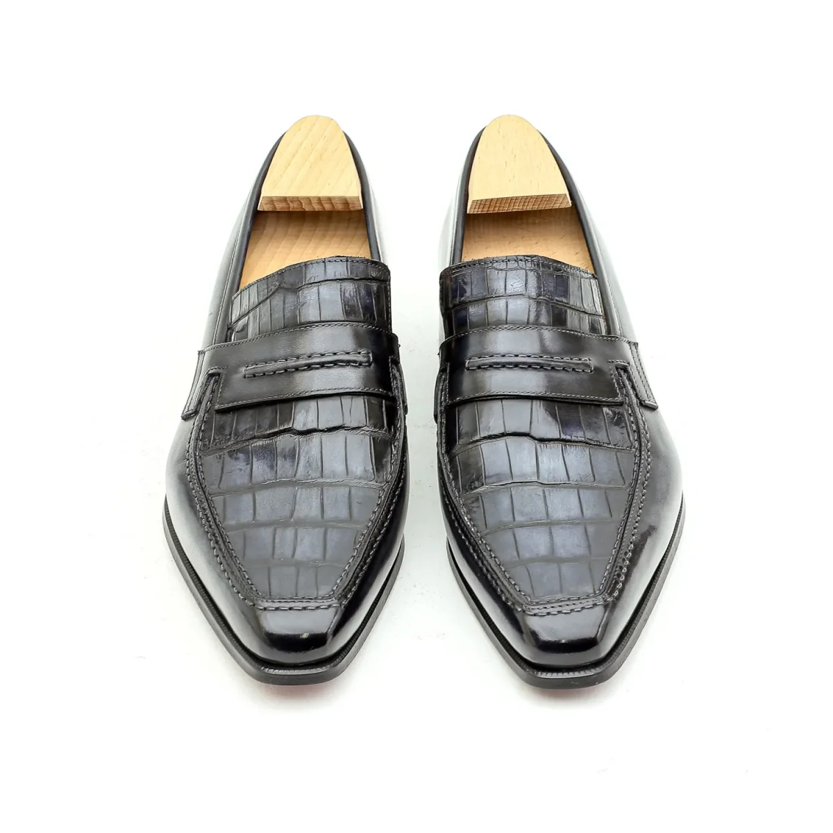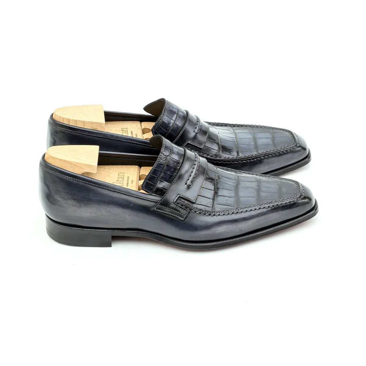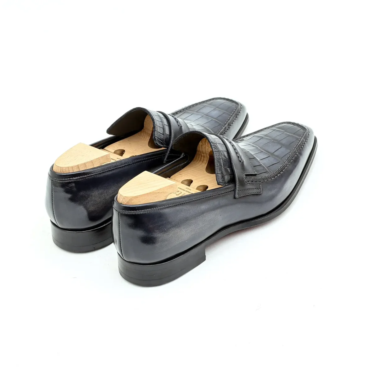 Le Lincoln 2 est notre nouvelle version de notre emblématique mocassin Le Lincoln. Nous en avons modifié le strap qui dorénavant propose une couture en rappel de celle du plateau. Il est ici présenté dans une version précieuse en bi-matière plateau en cuir de crocodile patiné et cuir de veau. N’hésitez pas à assortir votre paire de Lincoln avec une ceinture en crocodile patiné!