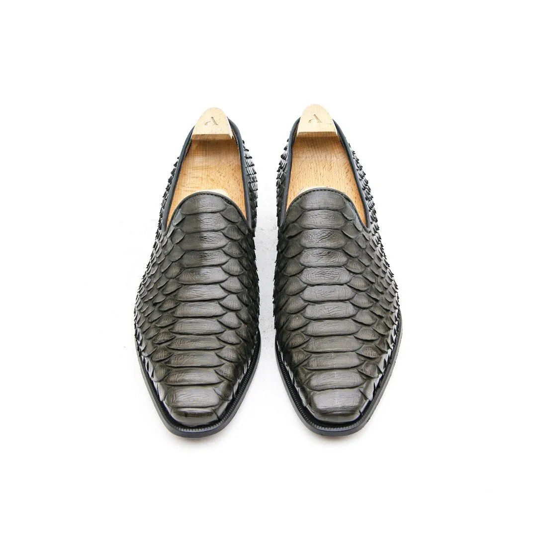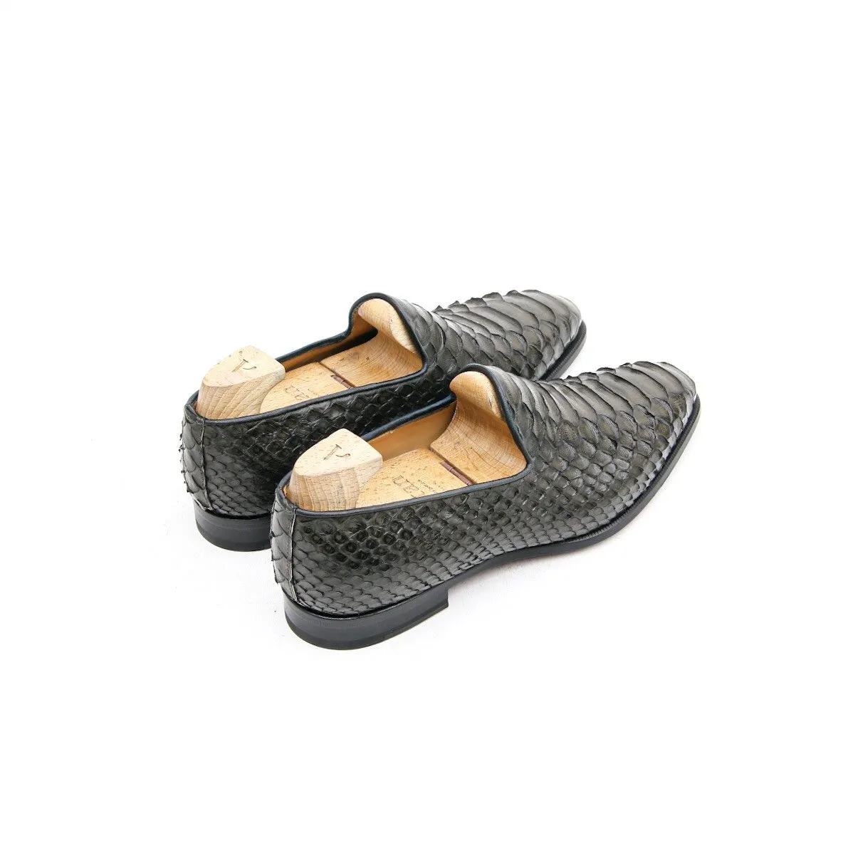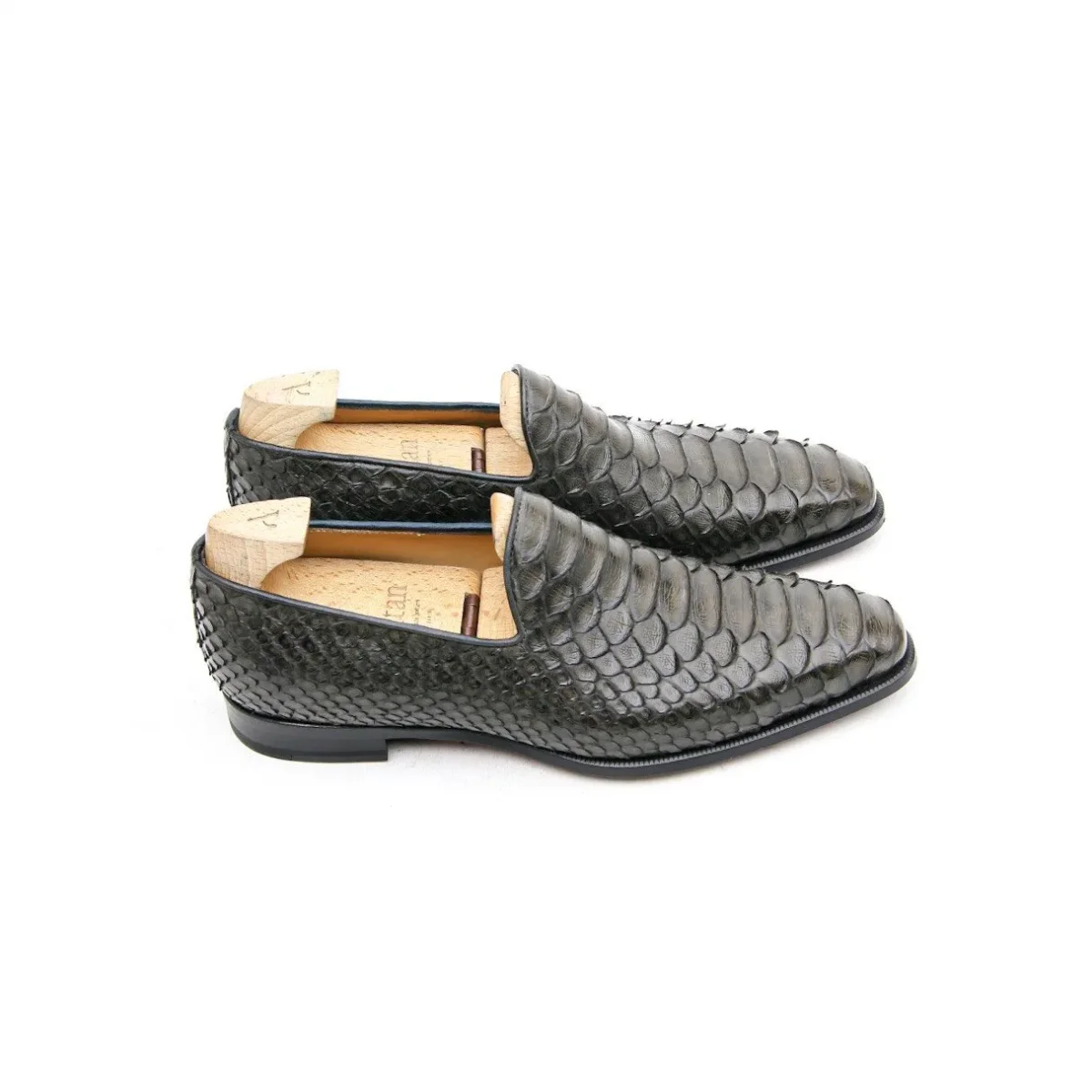 Ce mocassin est réalisé en une seule pièce de cuir de Python. S’inspirant des formes de l’Albert Slipper ce mocassin très « casual » dans l’esprit n’en reste pas moins un véritable soulier à la construction traditionnelle à bout dure et montage blake sous gravure. C’est un mocassin finalement quasi toute saison. Présenté ici dans une couleur Kaki.