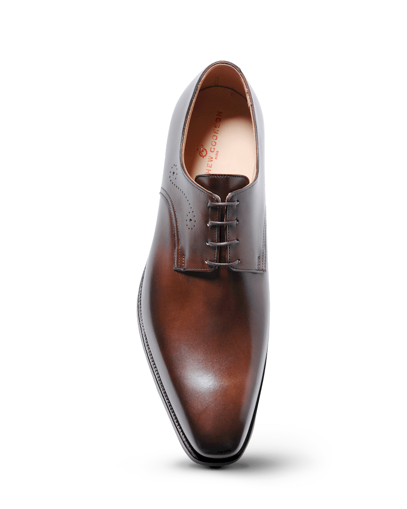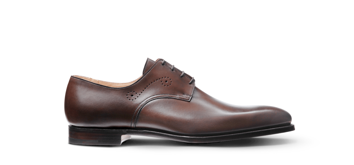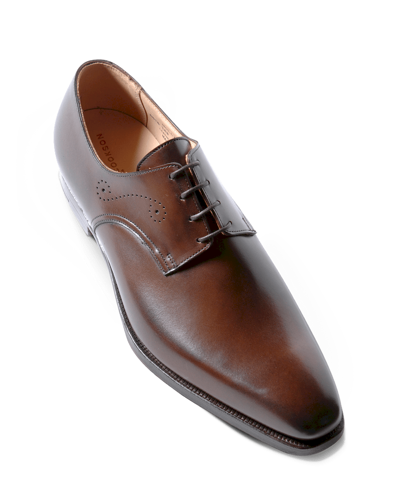 Simple et beau, ce Derby est un must dans toutes les garde-robes. Cousu trépointe Goodyear avec semelle cuir sauf modèle en veau velours tabac qui possède une semelle gomme Dainite. Made in England.