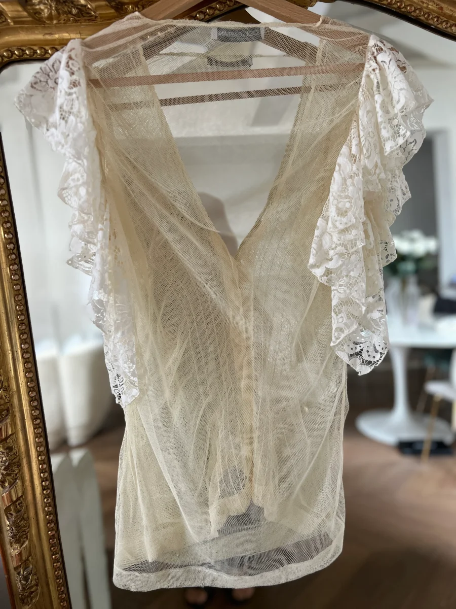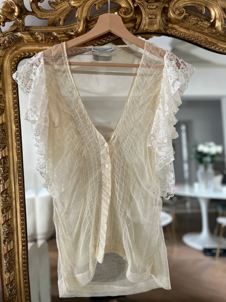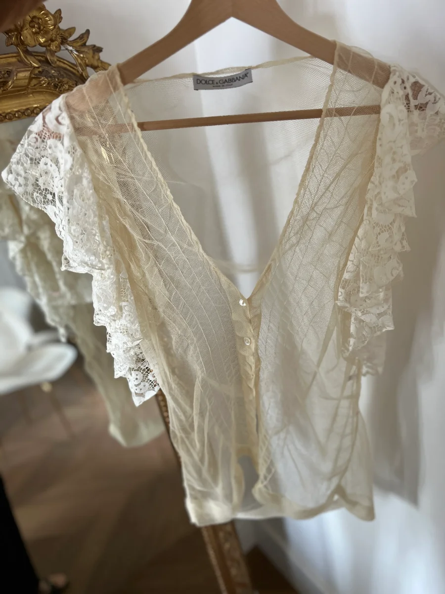 Noémie Lenoir Gilet dentelle Dolce&Gabbana ecru