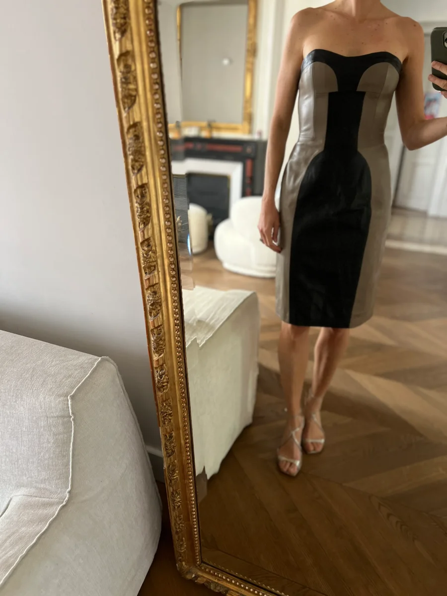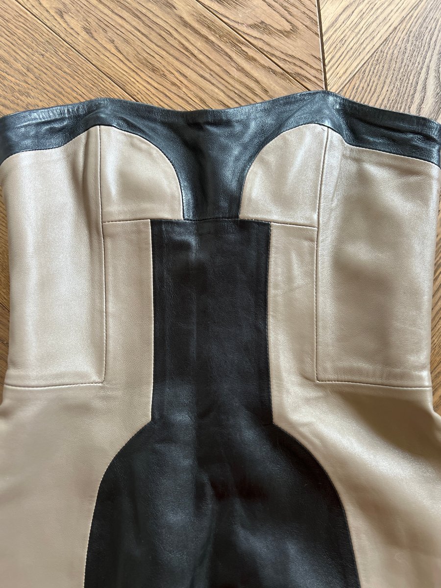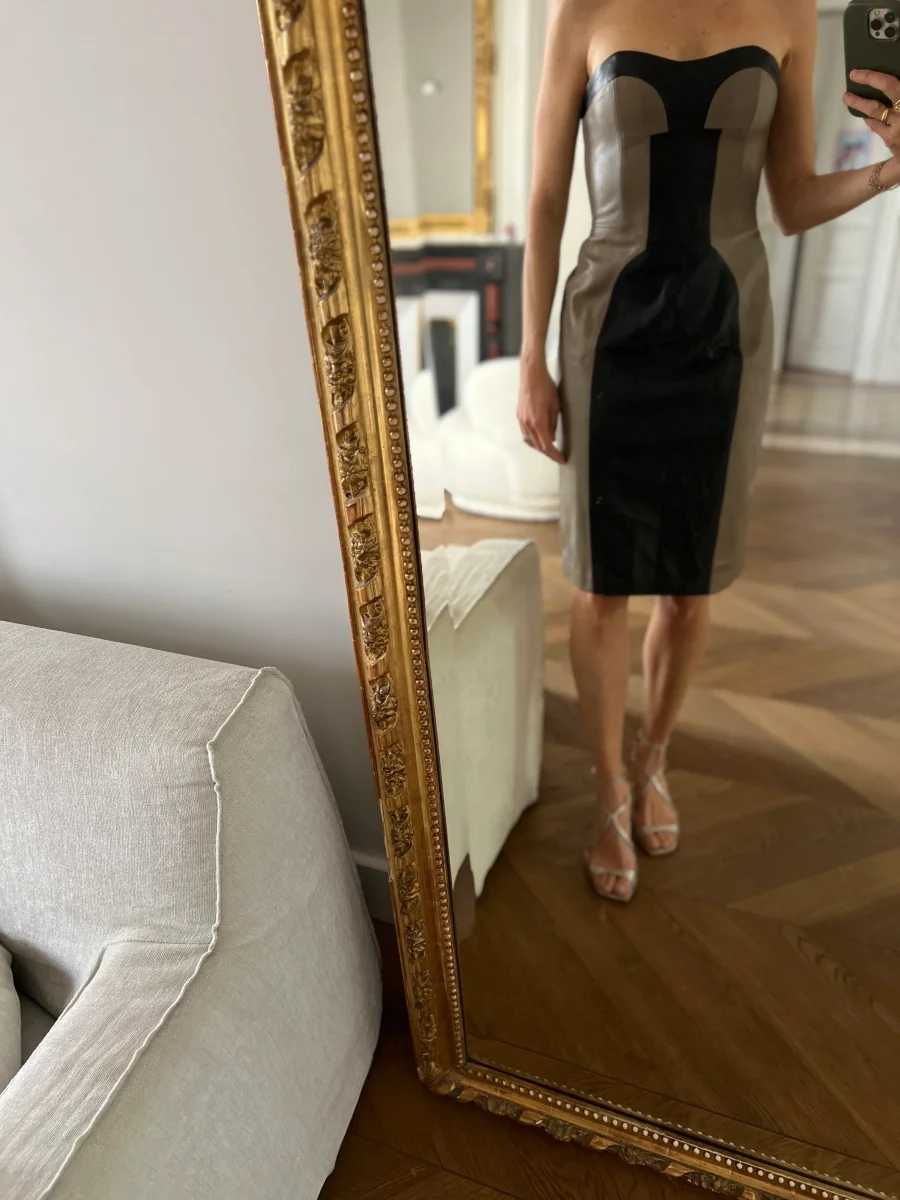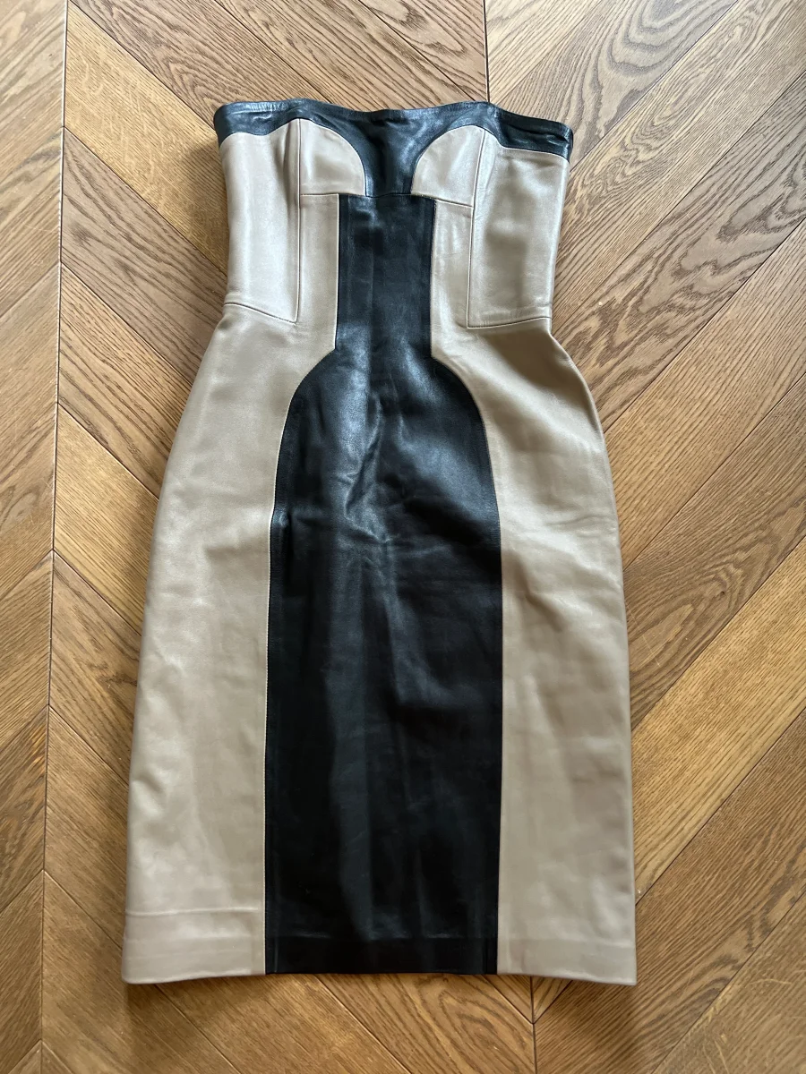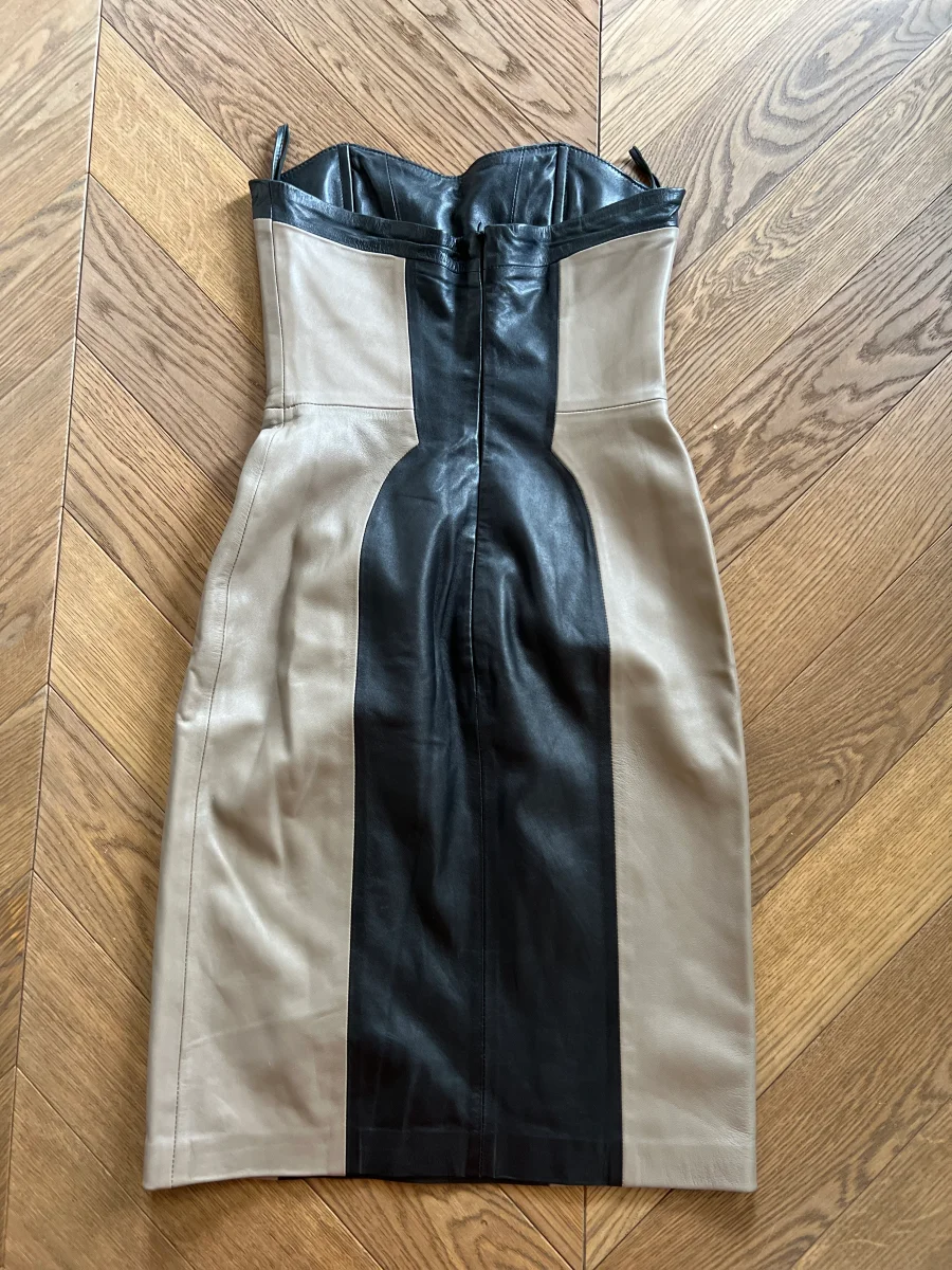 Noémie Lenoir Robe bustier en cuir noir et taupe