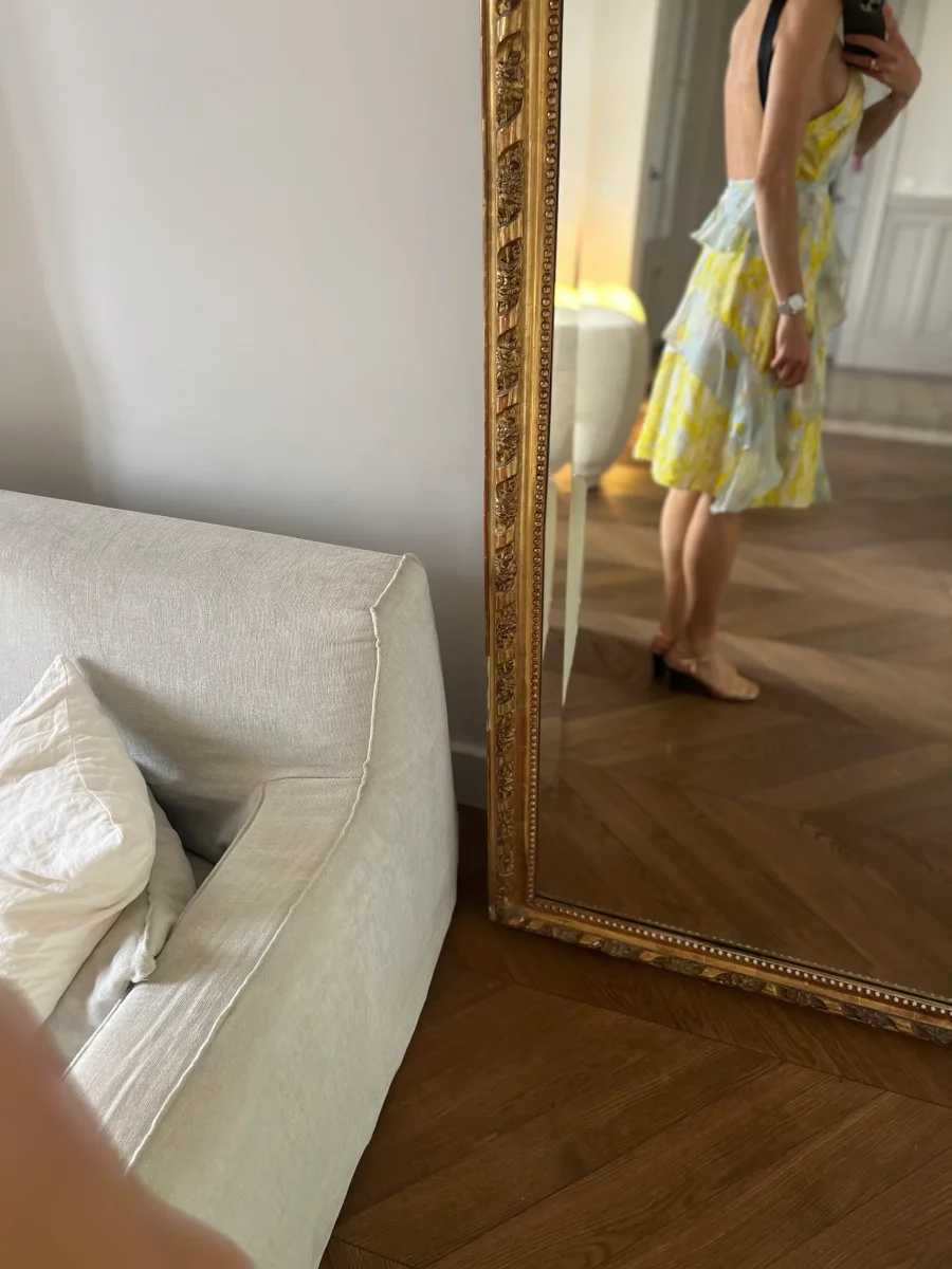 Noémie Lenoir Robe H&M Conscious Exclusive en soie jaune