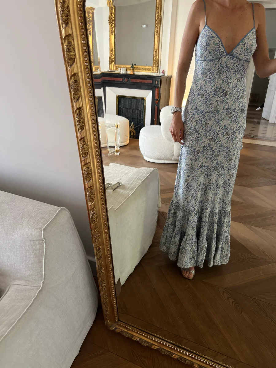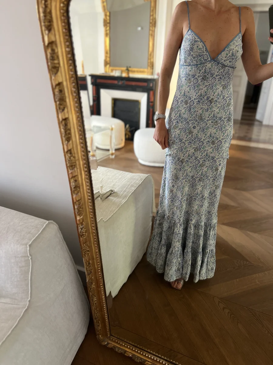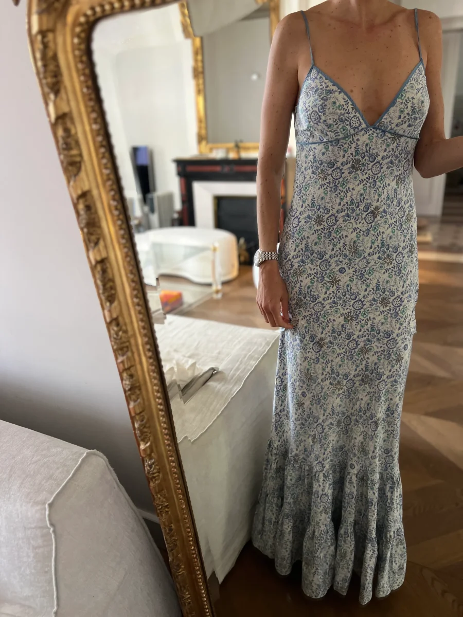 Noémie Lenoir Robe longue à bretelles Chloé bleu
