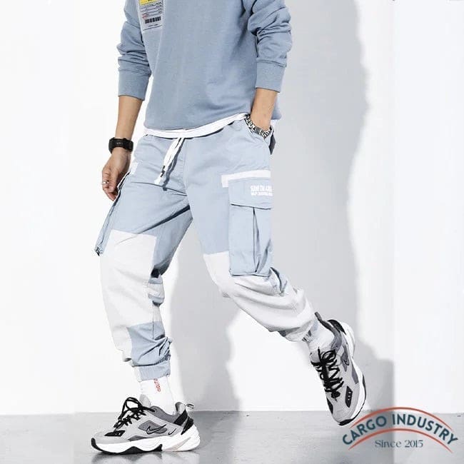 Pantalon cargo en bleu et blanc pour le style streetwear
