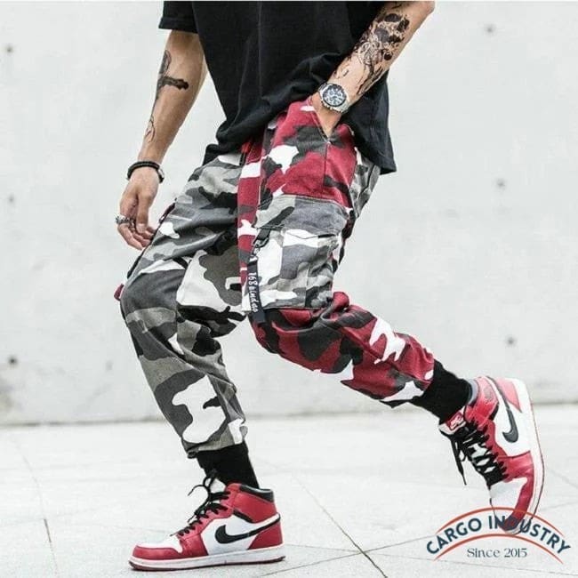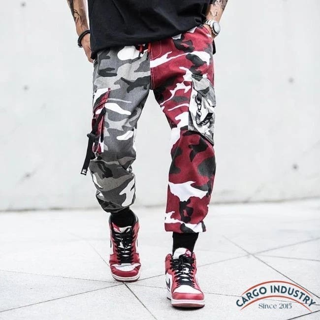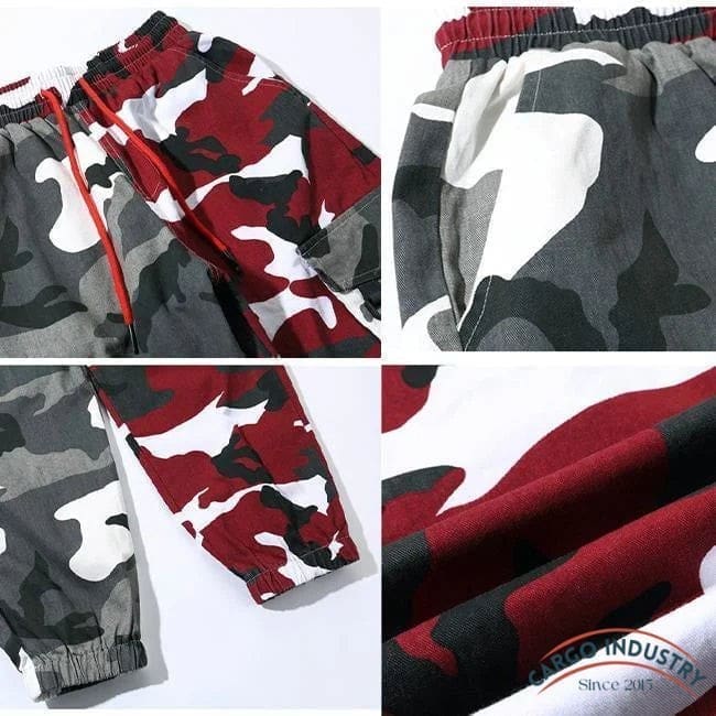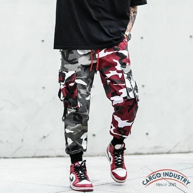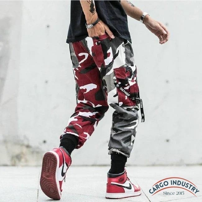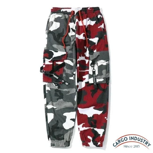 Pantalon Cargo Camouflage Rouge Et Gris