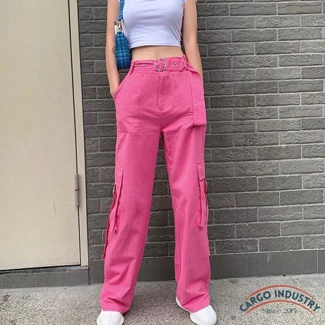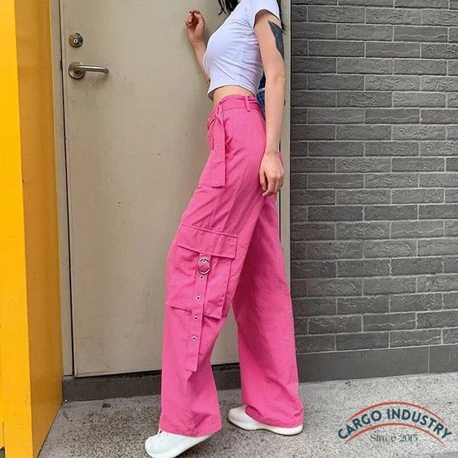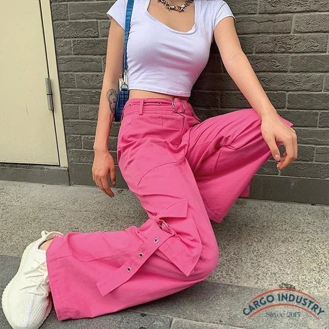 Pantalon cargo rose large pour femme
