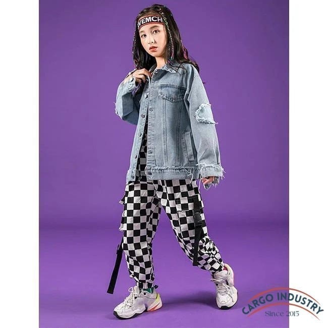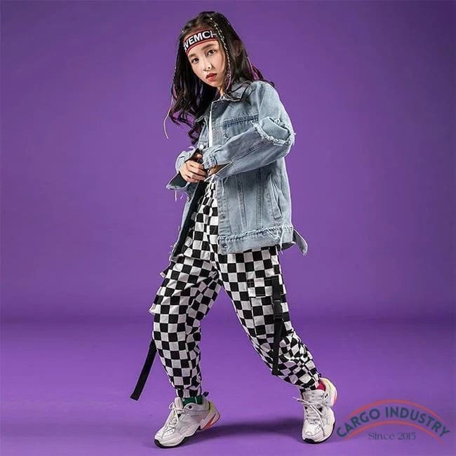 Pantalon Cargo Fille Hip Hop À Carreaux