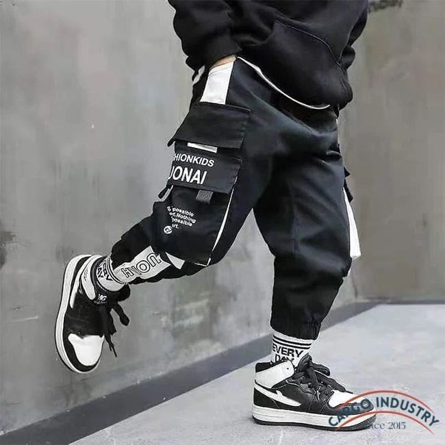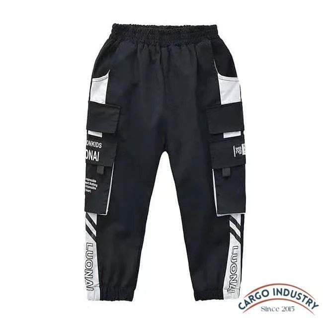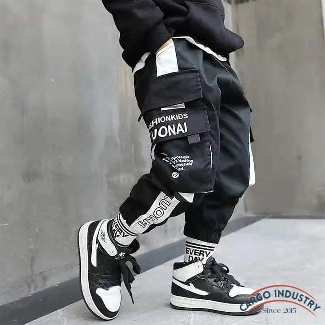 Pantalon Cargo Garçon Streetwear Noir/Blanc