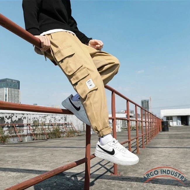 Pantalon Cargo Homme Beige Harem