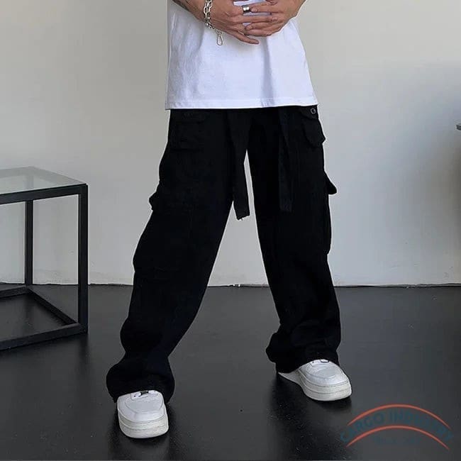 Pantalon cargo coupe large pour homme Un vêtement streetwear pour homme idéal pour les amateurs de mode urbaine, ce pantalon cargo coupe large est doté de poches latérales boutonnées offrant un espace de rangement pratique pour les petits objets essentiels. La coupe large offre une grande liberté de mouvement et des passants pour ceinture pour […]