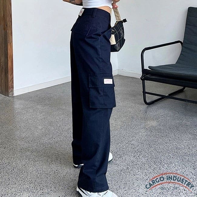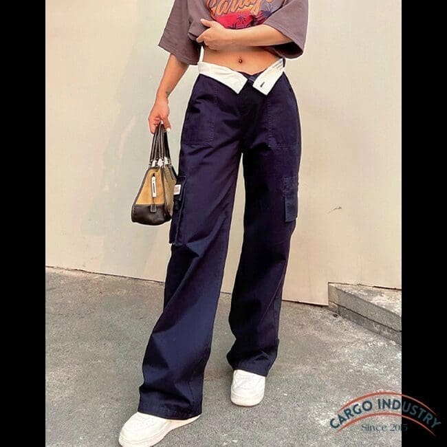 Donnez Un Coup de Jeune à Votre Look avec Notre Pantalon Cargo en Jean Bleu Marine Élégant pour Femme