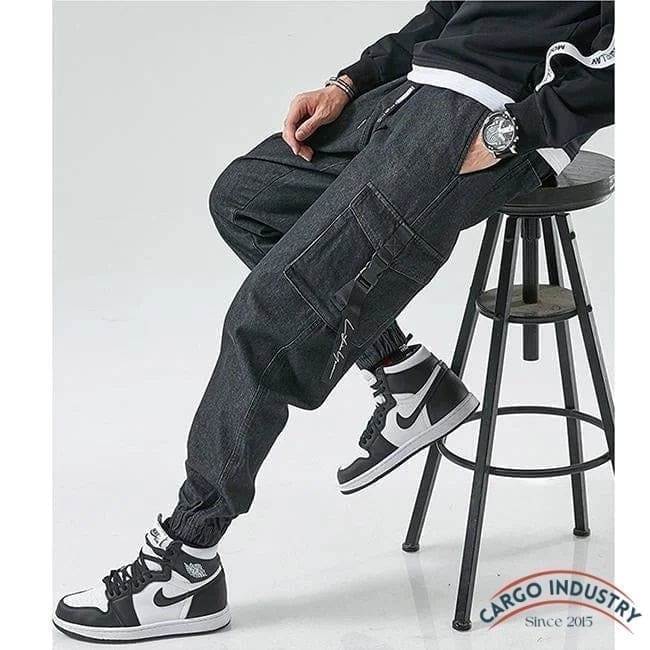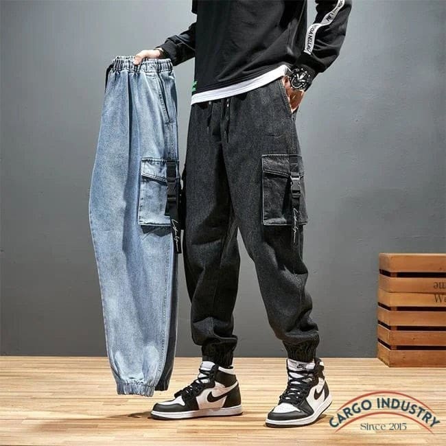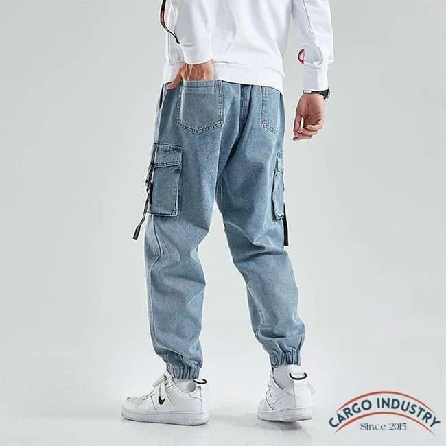 Pantalon cargo en jean pour homme avec sangle