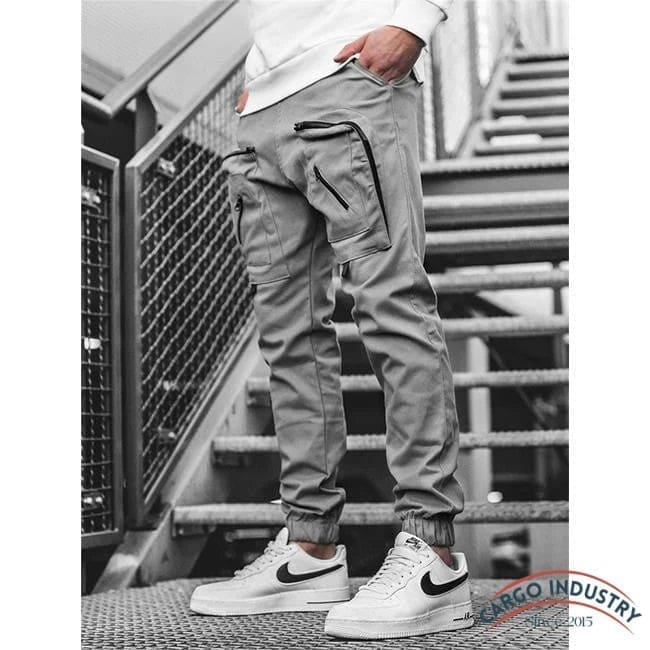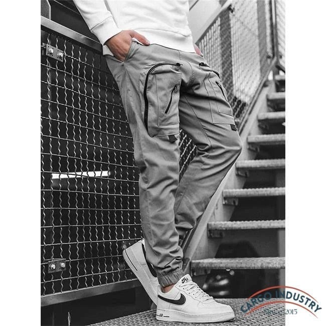 Il présente un style streetwear, avec sa couleur gris clair et ses poches zippées à la mode. Ce pantalon multipoches dispose de deux poches classiques et deux autres sur les cuisses avec des poches à fermeture éclair faciles d’accès.