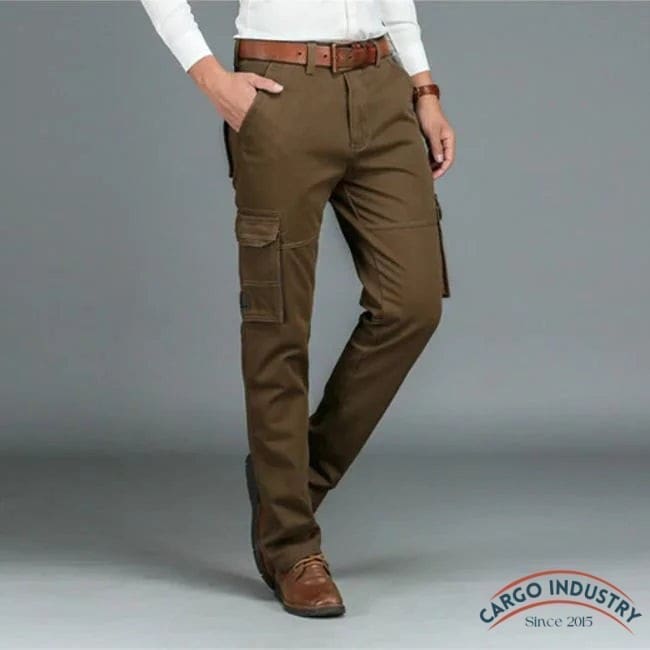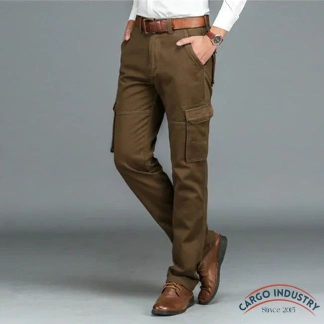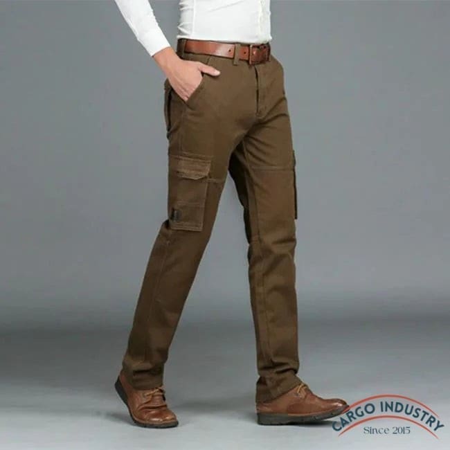 Chic et décontracté, nous vous proposons un pantalon cargo marron qui s’adaptera à toutes les morphologies. Doté de six poches, dont deux sur les côtés des cuisses, deux poches italiennes sur le devant et deux poches à l’arrière, il vous offre un grand espace de rangement.