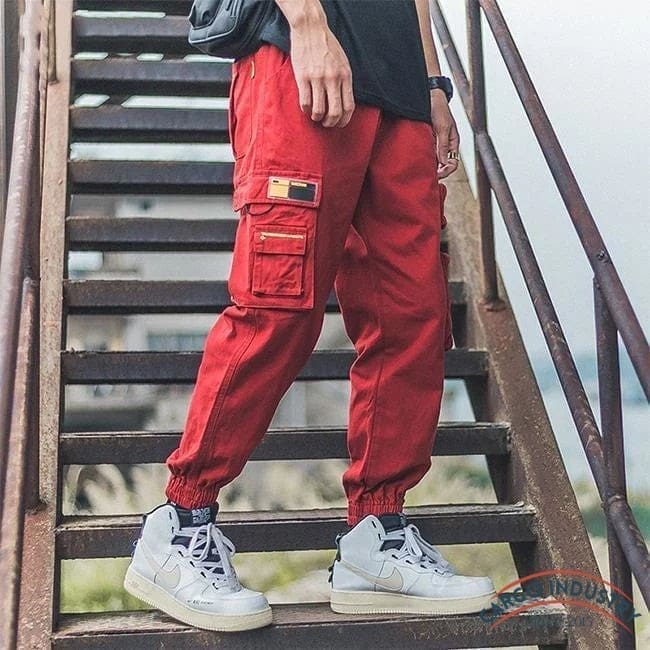 Pantalon Cargo Streetwear Rouge