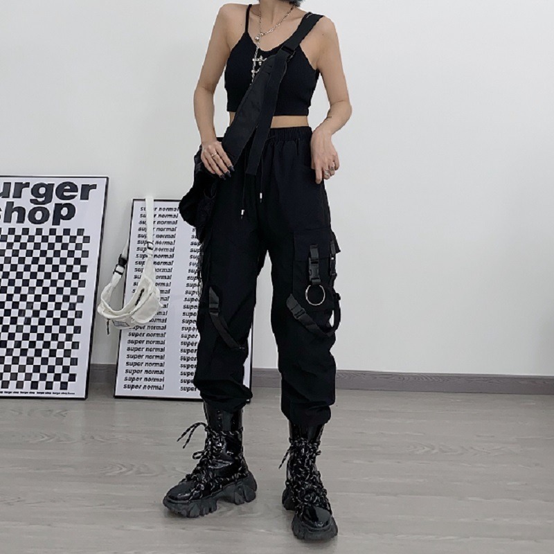 Equipé de sangles et de plusieurs poches, ce pantalon combine à la fois confort, utilité et style streetwear futuriste. Inspiré de différents thèmes, tels que le style cyberpunk, militaire et darkwear, ce pantalon cargo est un indispensable pour adopter la mode techwear, si admirable et si classe.