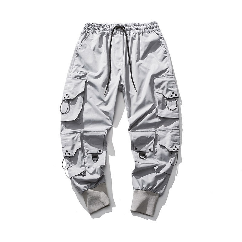 Equipé de sangles et de plusieurs poches, ce pantalon combine à la fois confort, utilité et style streetwear futuriste. Inspiré de différents thèmes, tels que le style cyberpunk, militaire et darkwear, ce pantalon cargo est un indispensable pour adopter la mode techwear, si admirable et si classe.