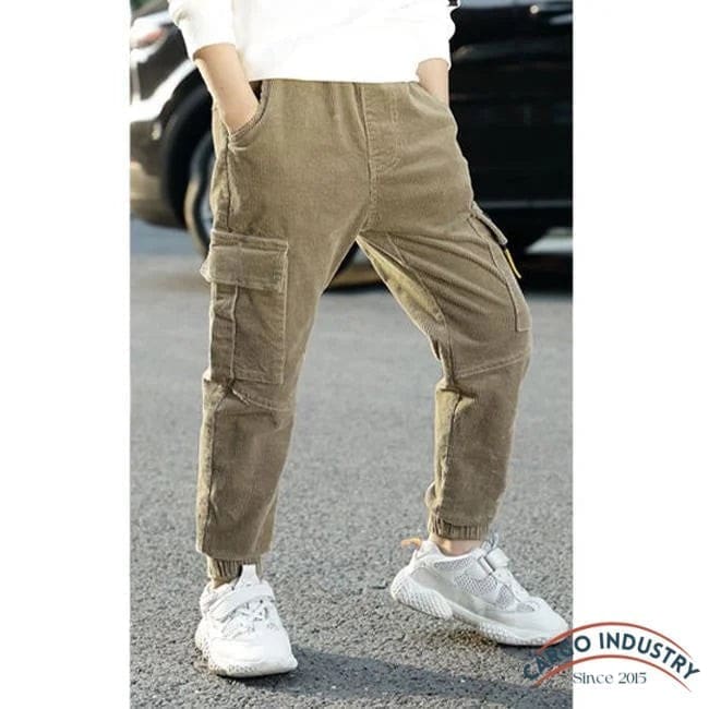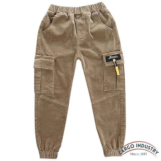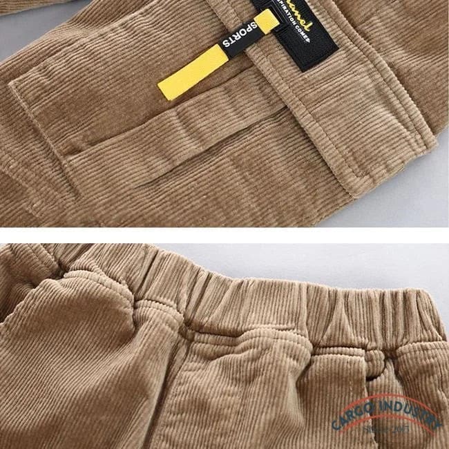 Votre garçon peut maintenant profiter du confort de ce pantalon cargo slim en velours ! Ce modèle allie des détails intéressants : une silhouette moulante, une taille élastique, des bas de jambes étroitis par un grand élastique et des poches latérales qui donnent un côté décontracté à l’ensemble.